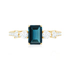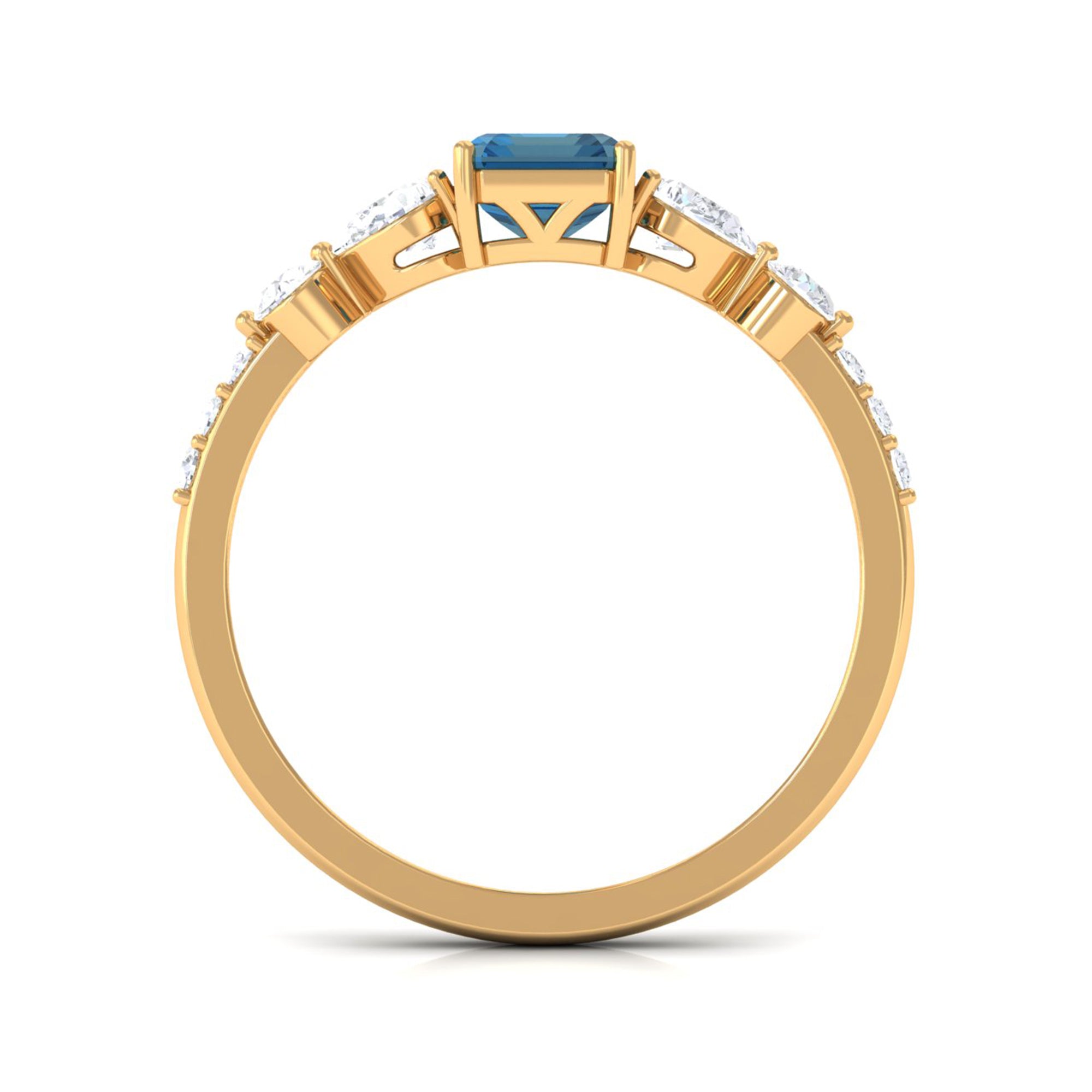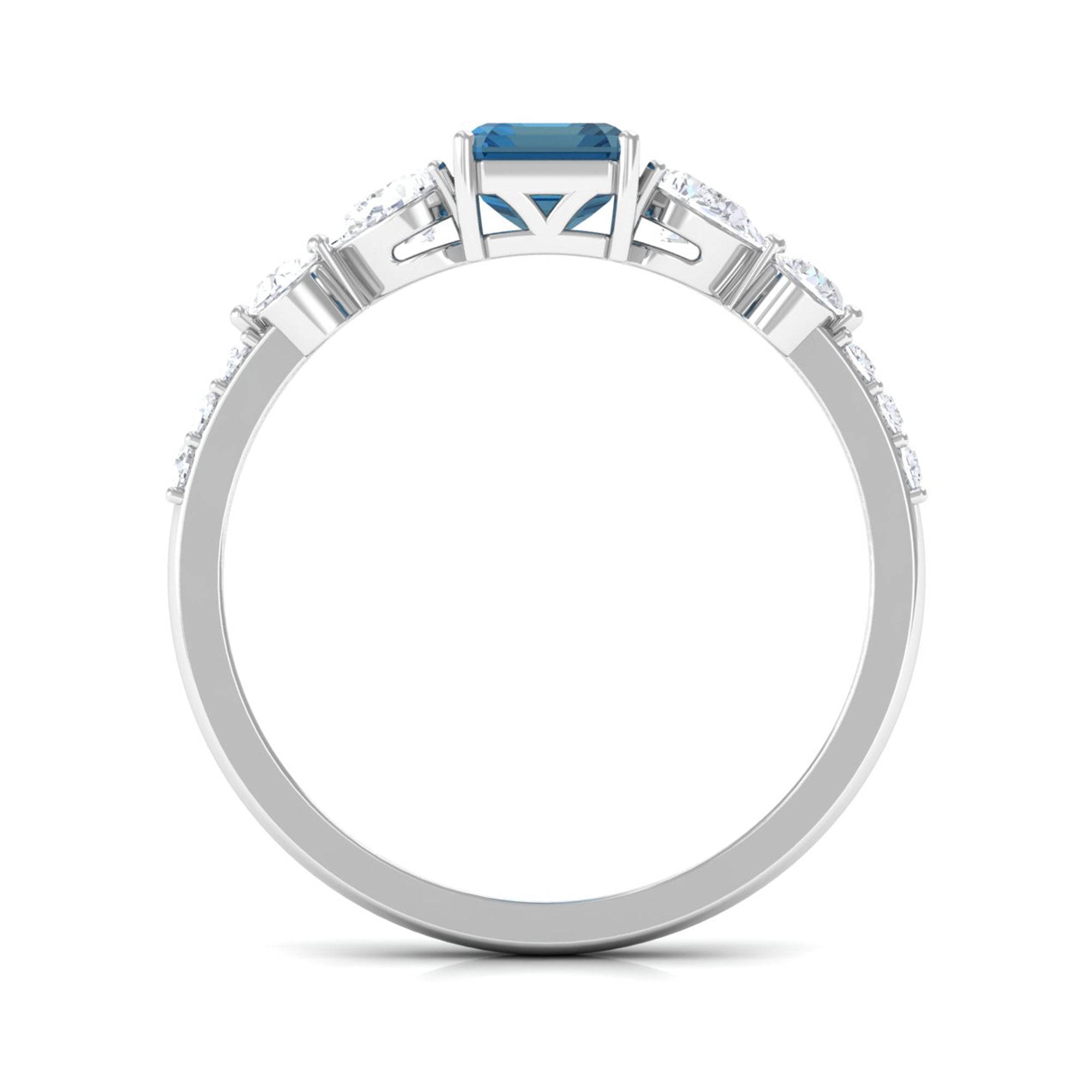 Genuine 6X8mm Emerald Cut London Blue Topaz Engagement Ring with Diamond