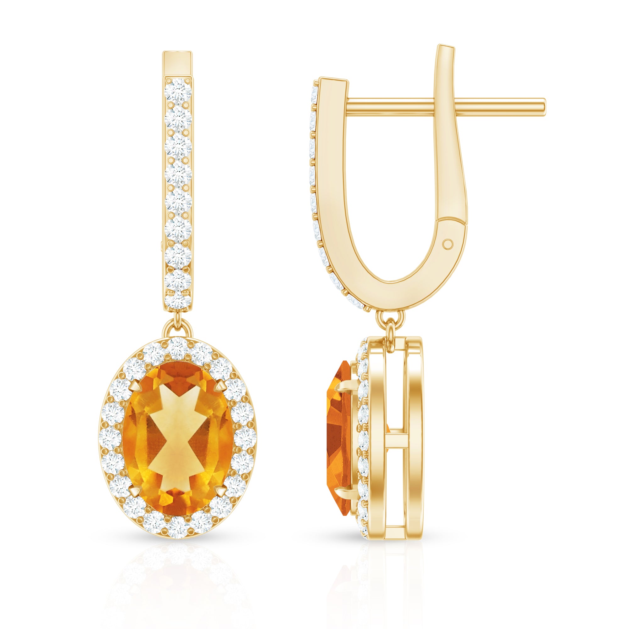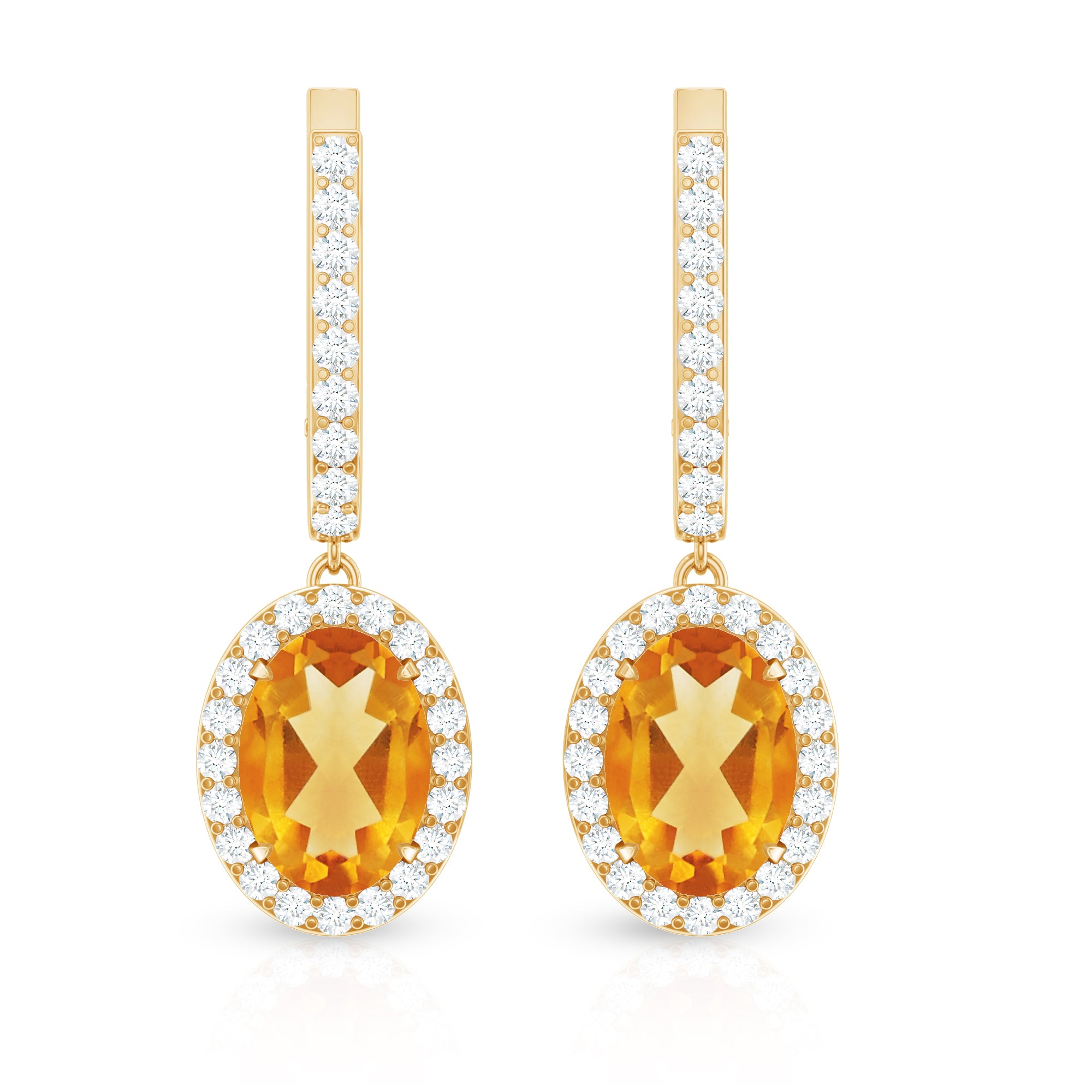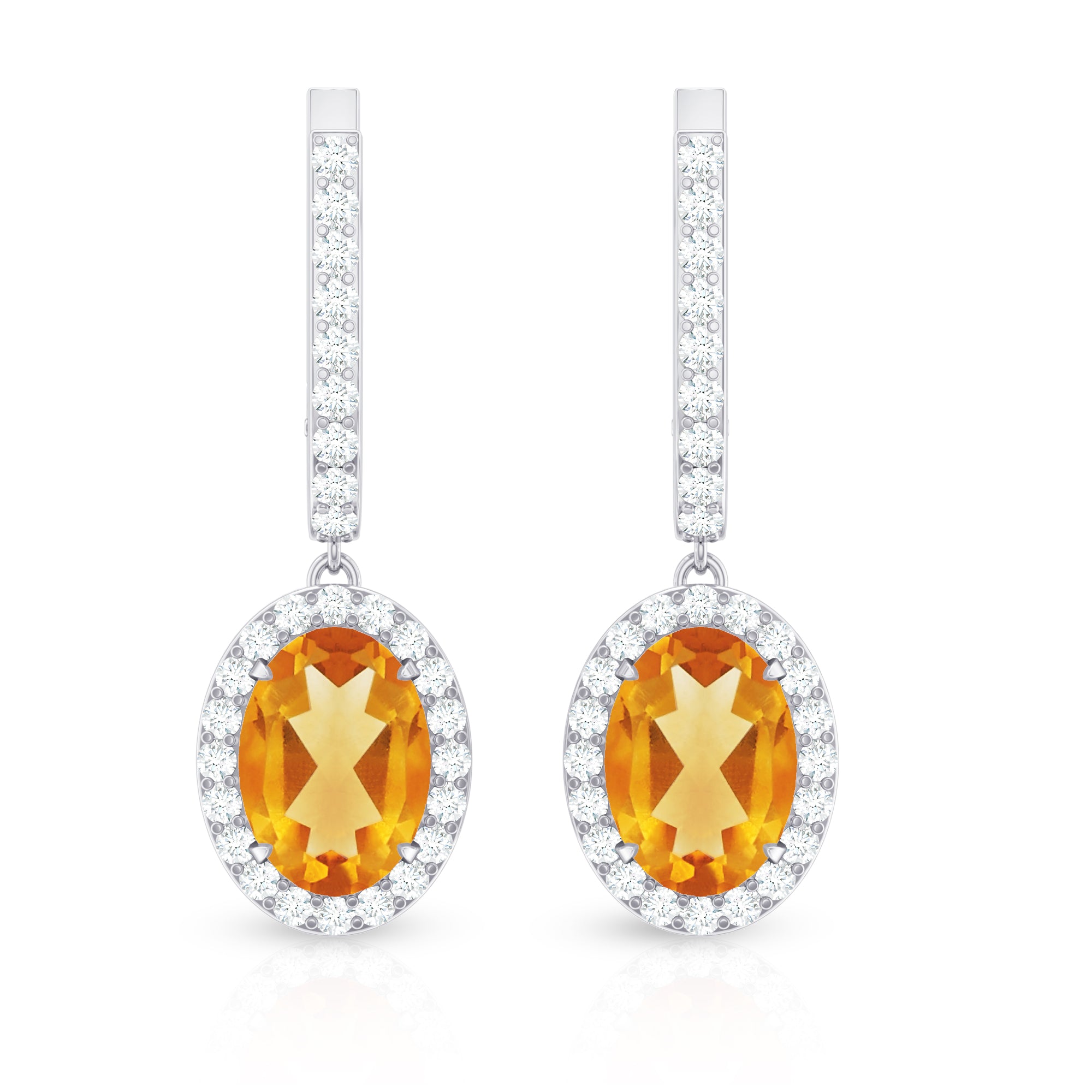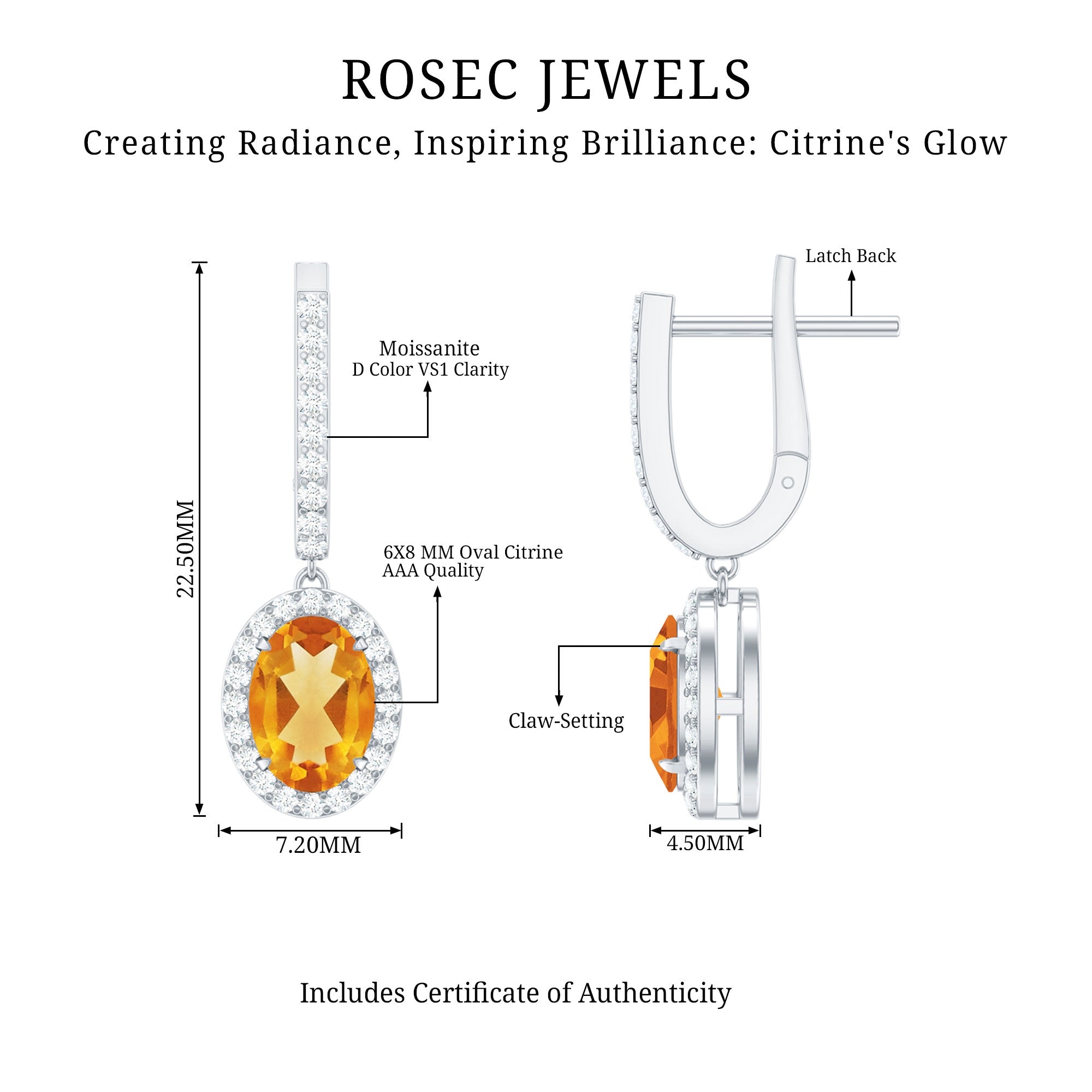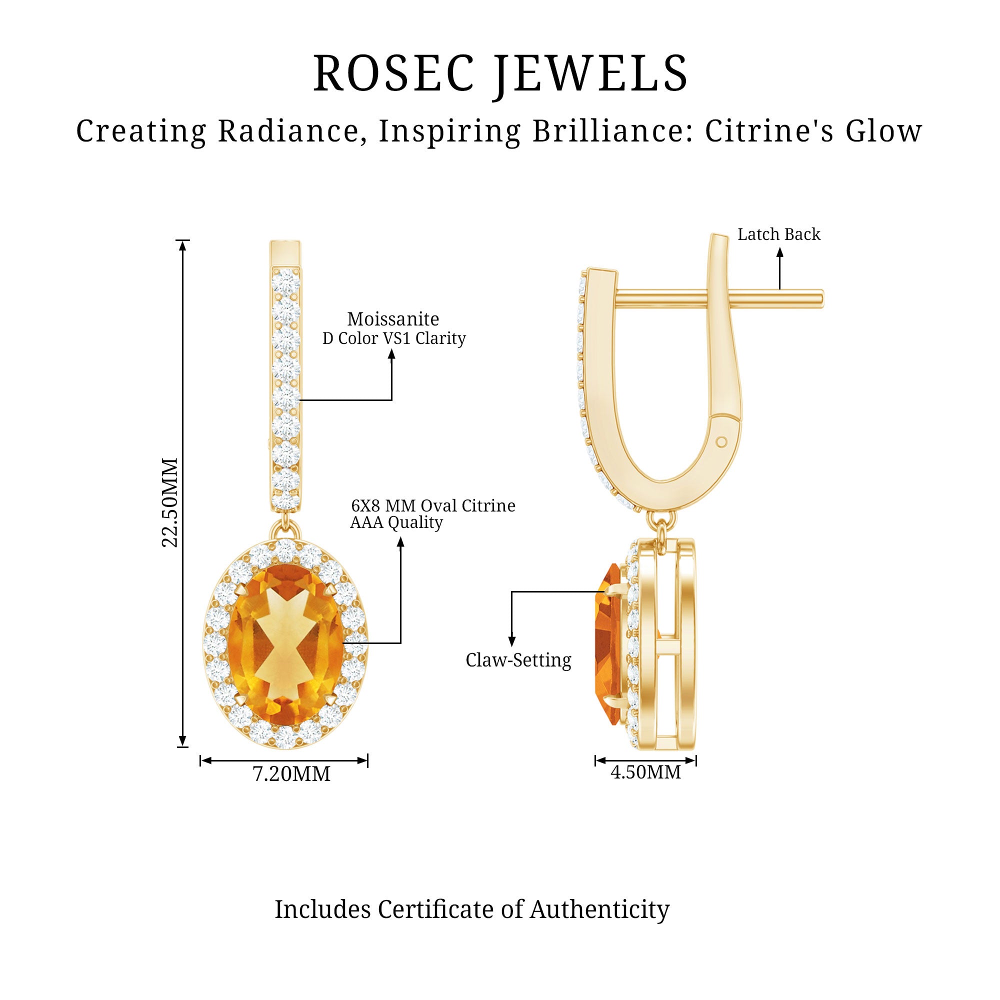 Bring a lot of sparkle and elegance to any outfit with these Citrine Drop Earrings. The warm golden glow of the 6X8 mm Oval Shape Citrine is beautifully surrounded by a Halo of dazzling Moissanite stones, creating a radiant sparkle that catches the light from every angle. Designed with a Secure Latch Back Closure, these Hoop Drop Earrings are comfortable to wear all day or night, making them perfect for special occasions or adding a touch of glamour to everyday looks. Their timeless drop design flows gracefully, while the combination of AAA Quality Citrine and D-VS1 Quality Moissanite offers a modern twist on classic elegance. Packaged in a signature jewelry box, these Citrine Hoop Earrings are ready to gift for birthdays, anniversaries or simply to show someone you care. These Citrine Earrings are a celebration of light, beauty and sophistication, designed to make anyone feel radiant and cherished. A perfect addition to any jewelry collection, they promise to delight and impress for years to come.