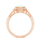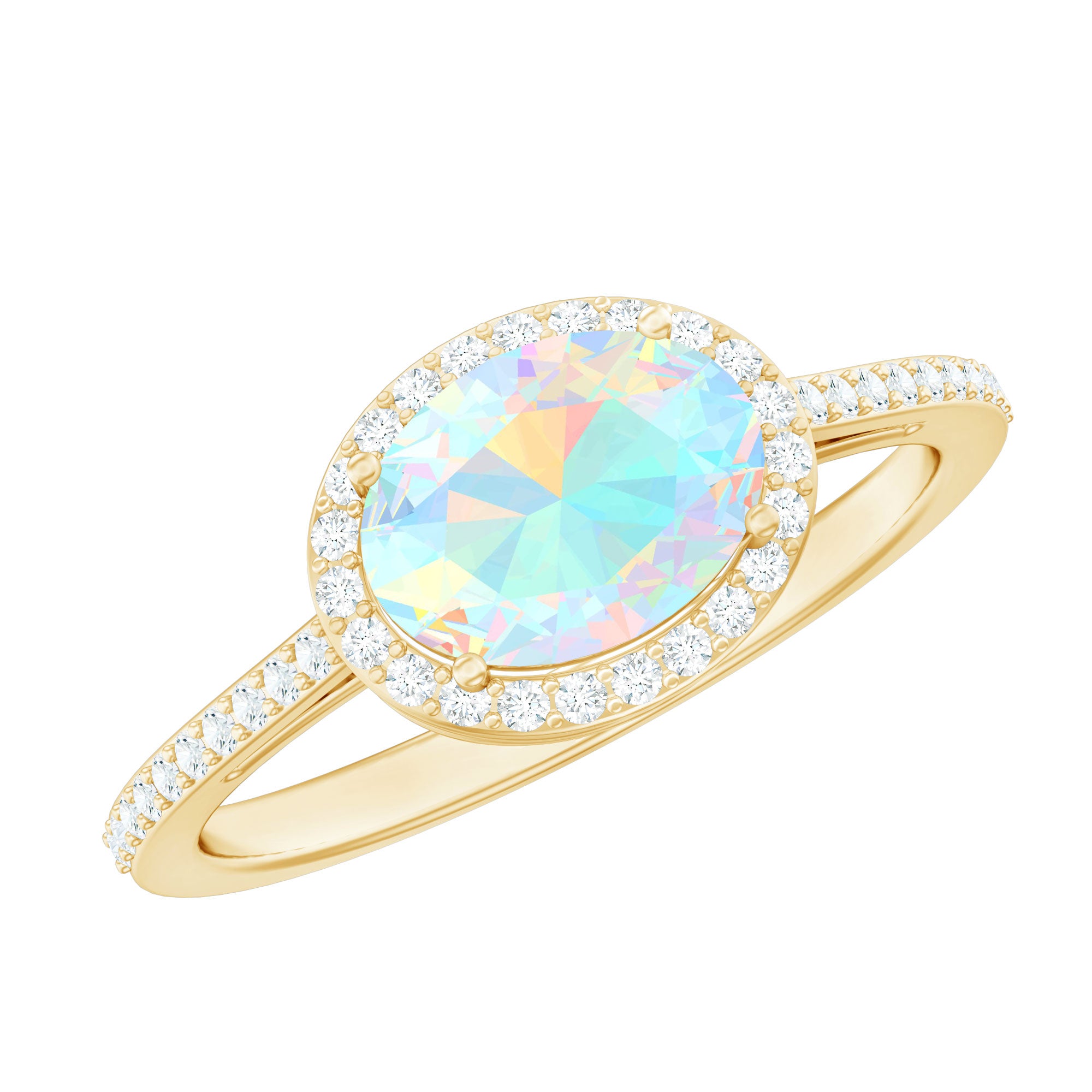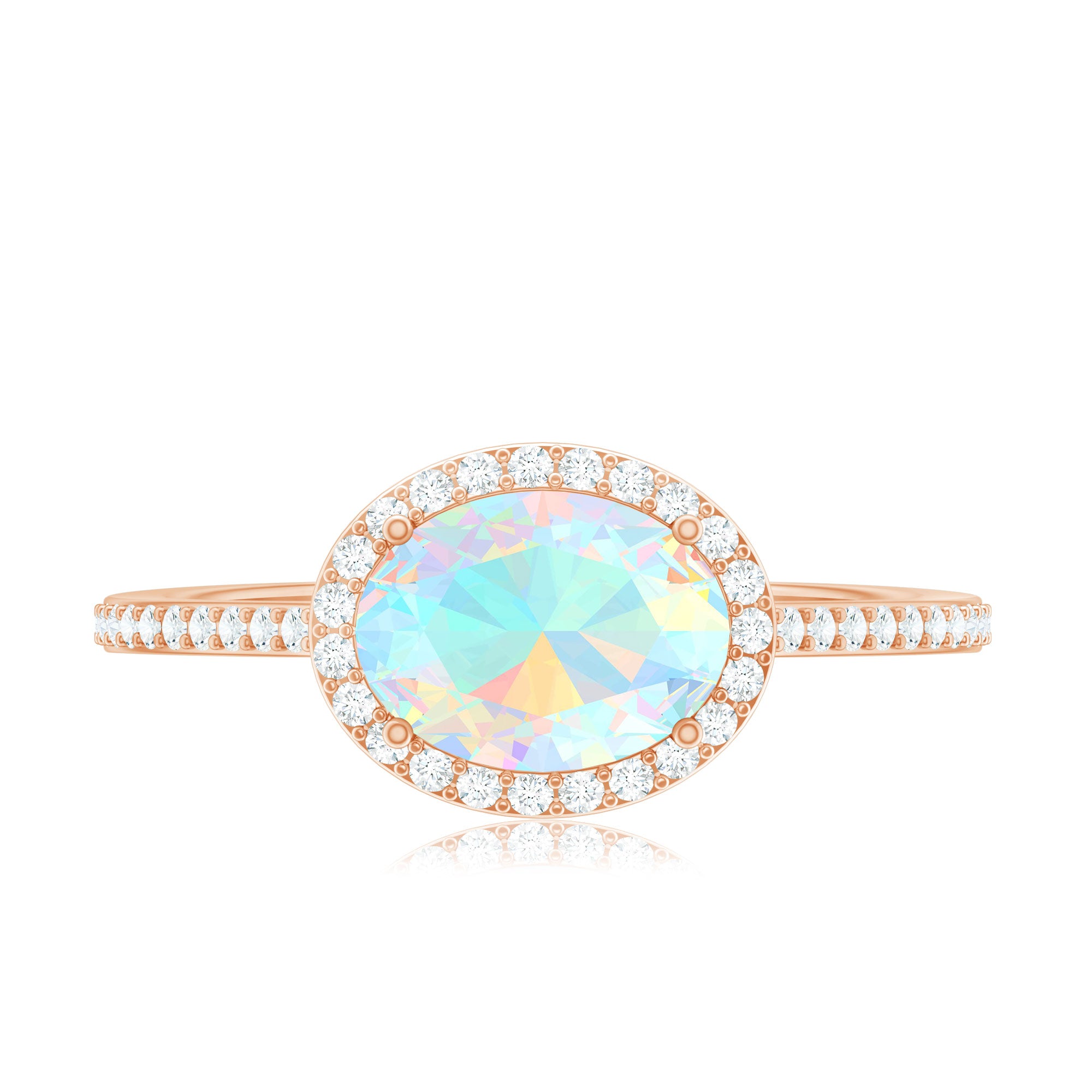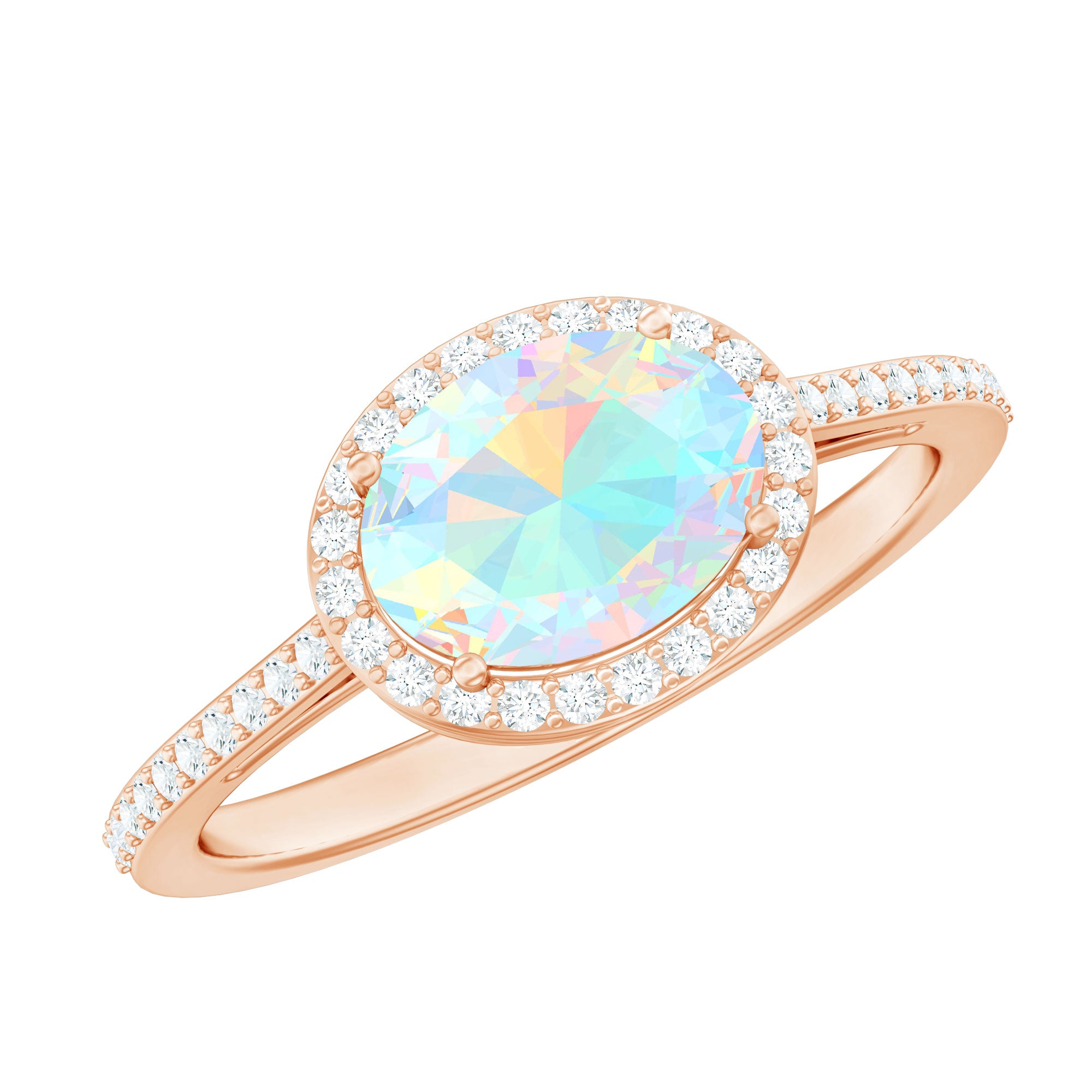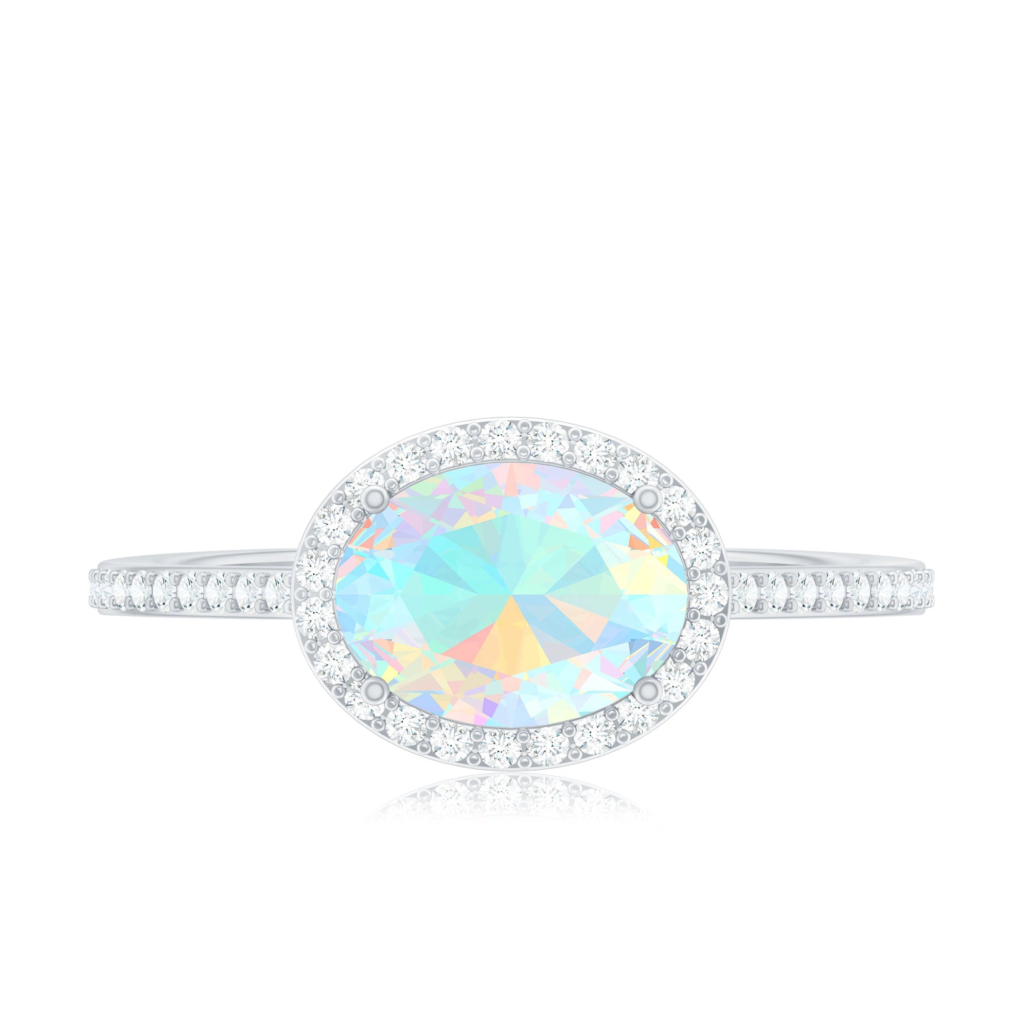 Genuine 6X8mm Oval Opalescent East West Engagement Ring with Diamond Halo
