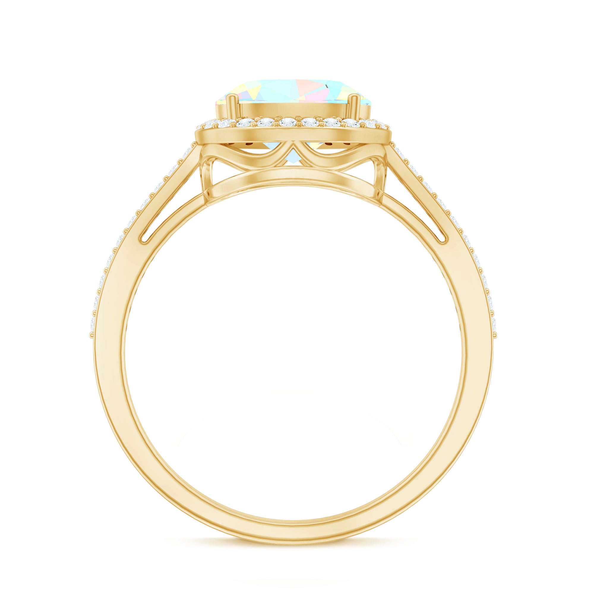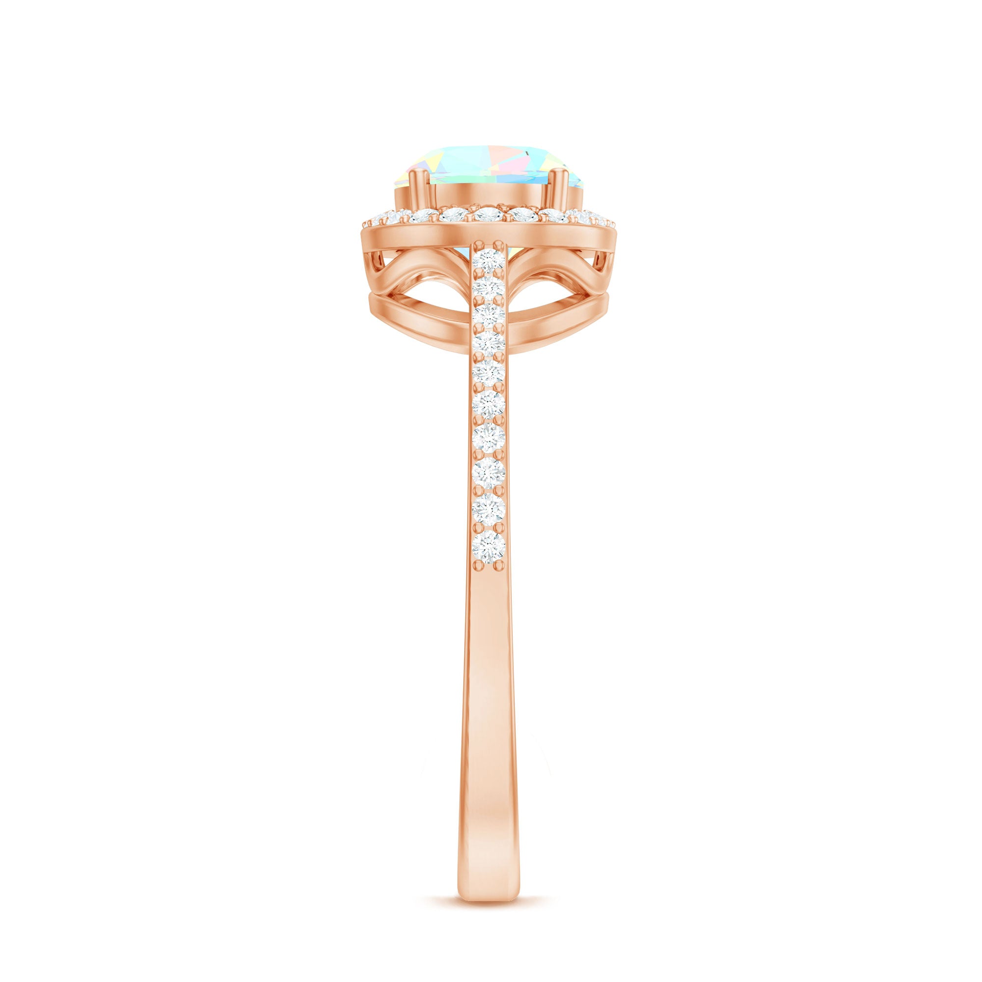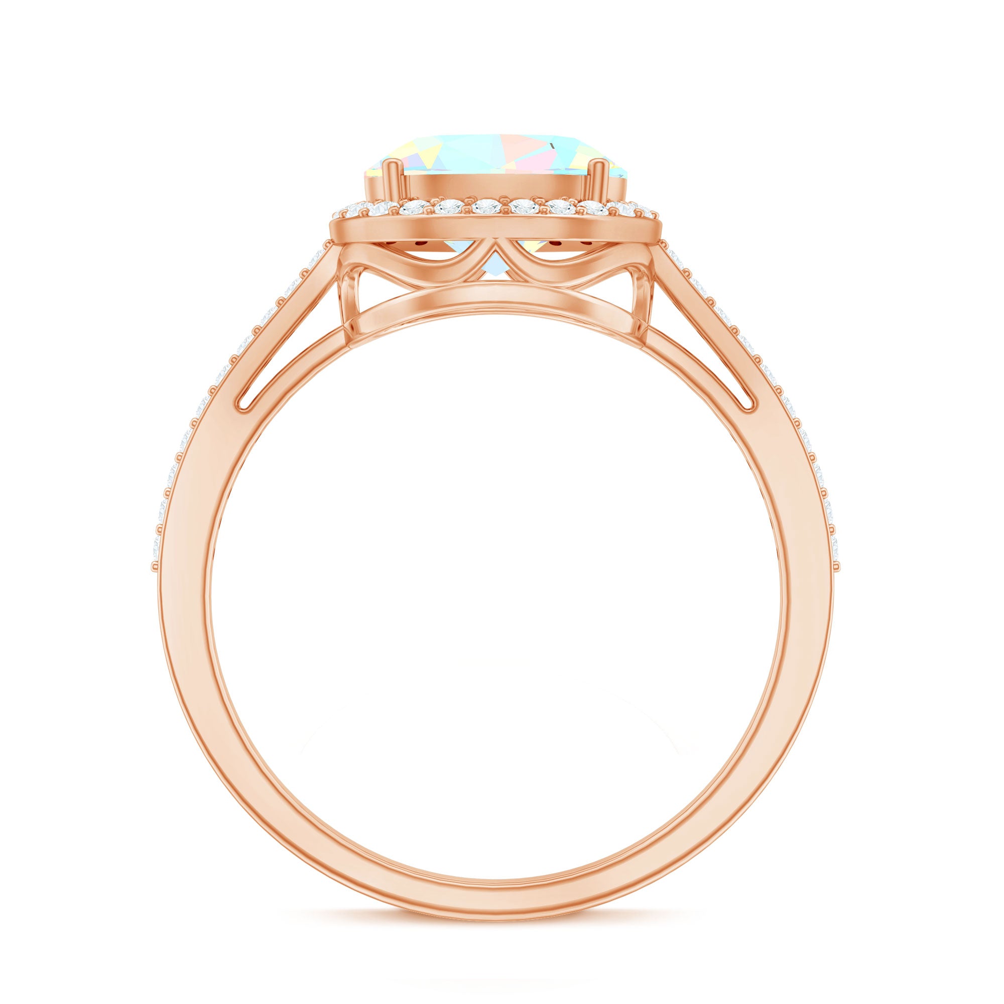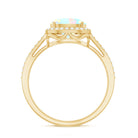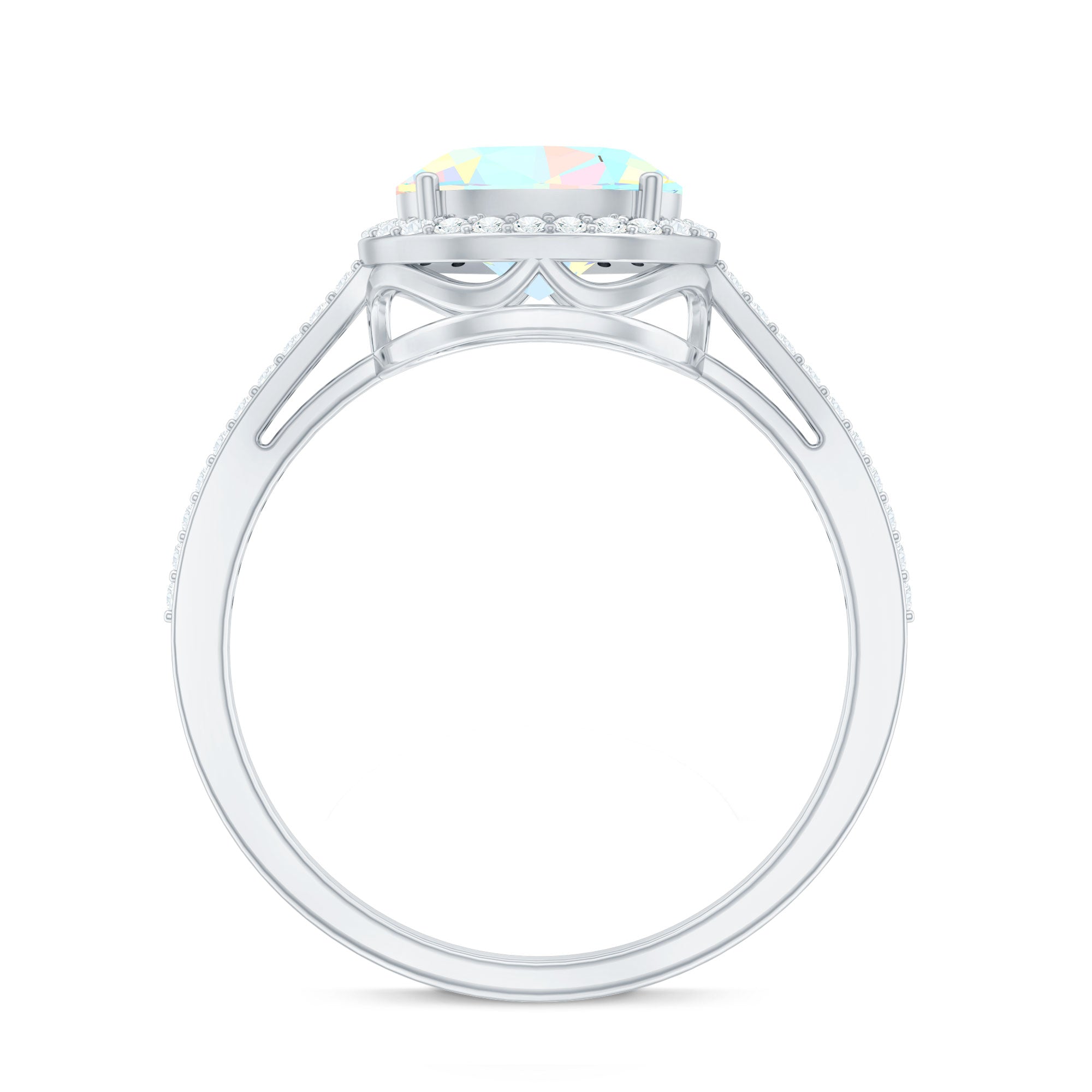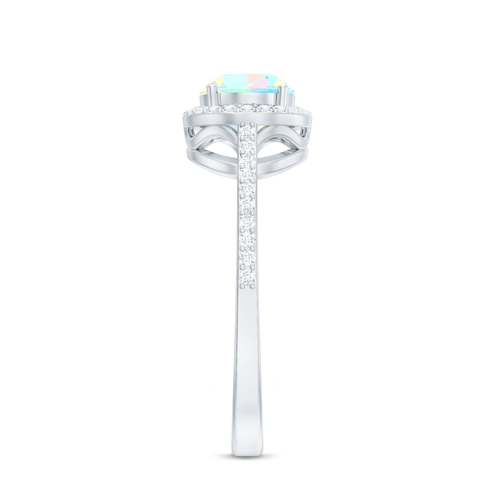 Genuine 6X8mm Oval Opalescent East West Engagement Ring with Diamond Halo
