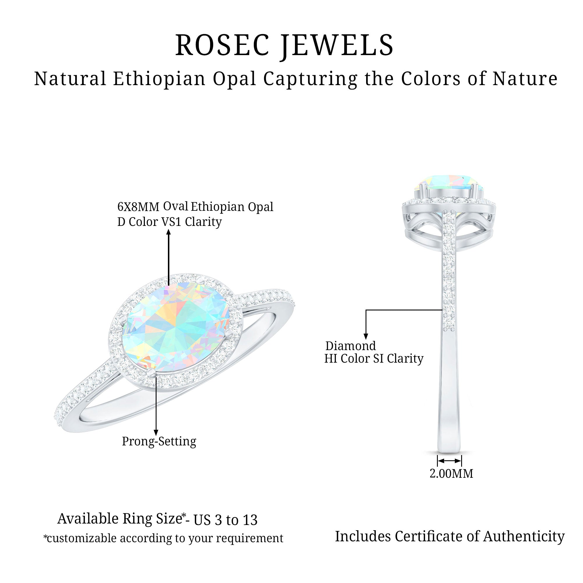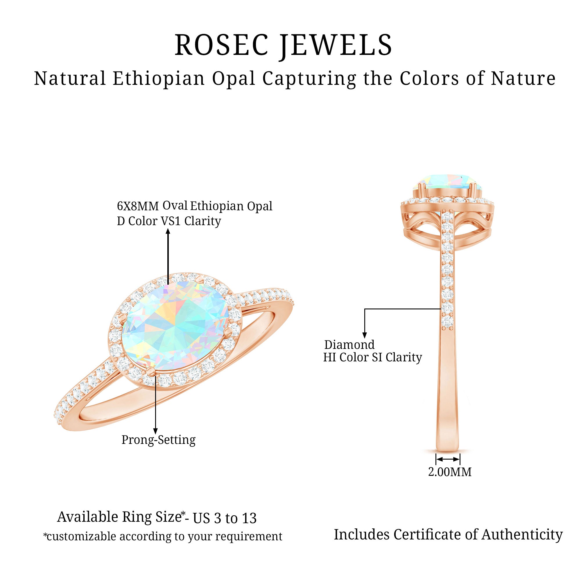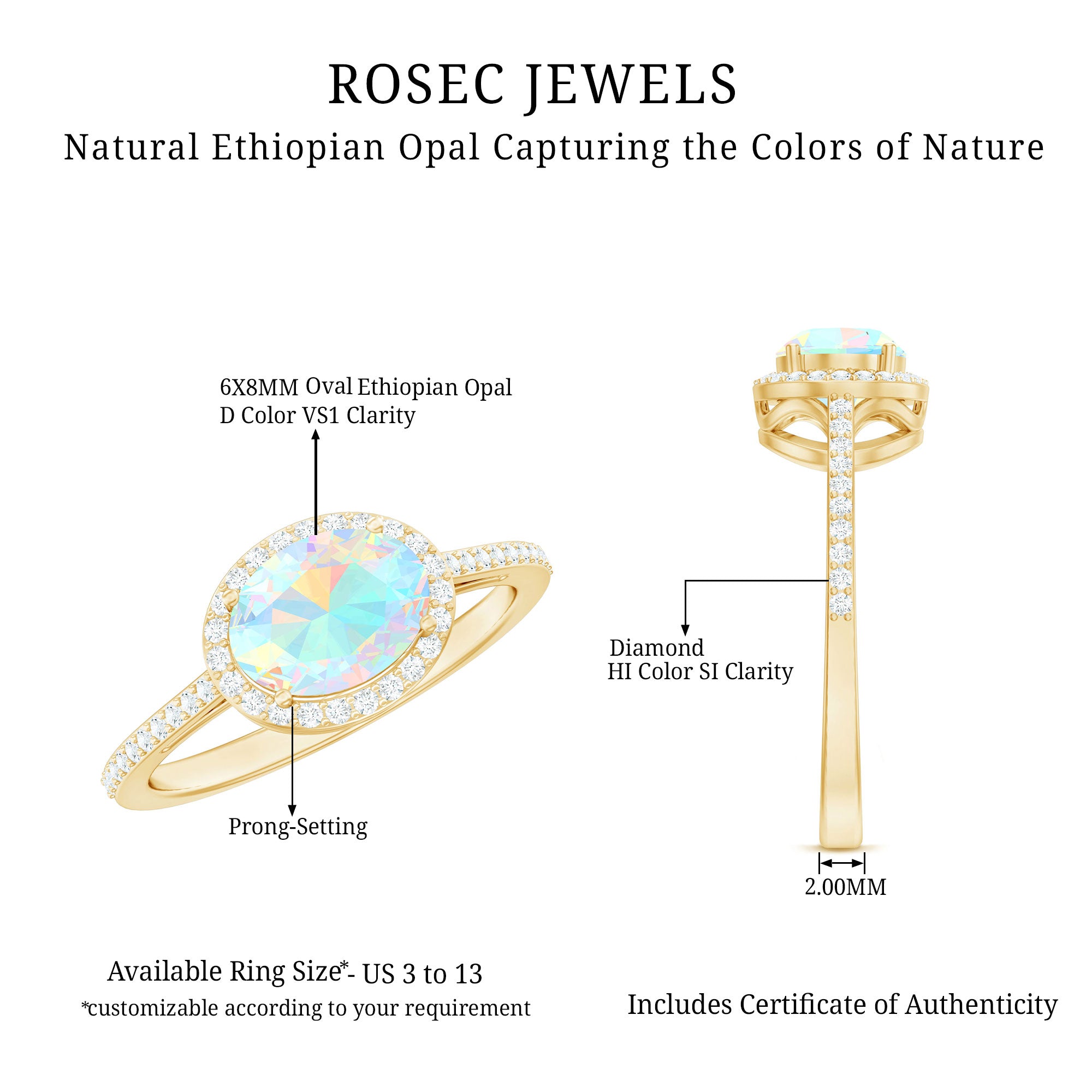Step into a world of modern romance with this Oval Engagement Ring, a dazzling blend of bold design and ethereal beauty. The 6X8 mm Oval Shape Ethiopian Opal center stone, set horizontally in an elegant east-west style, glows with dreamy hues that shift in the light like a captured sunset. Encircled by a brilliant Diamond Halo and flanked by sparkling Diamond Side Stones, this East West Engagement Ring is crafted to catch the eye and the heart from every angle. This Halo Engagement Ring with Opal is perfect for the bride who embraces elegance with a modern edge. Whether it is a surprise proposal or a carefully planned moment, this Opal and Diamond Engagement Ring is designed to mark your love with timeless sparkle and unforgettable charm. Available in a variety of sizes for the perfect fit, this Oval Opal Ring arrives beautifully packaged in a signature jewelry box, ready to become the centerpiece of your forever story.