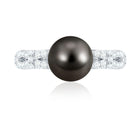 Genuine 8 Carat Black Pearl and Diamond Engagement Ring