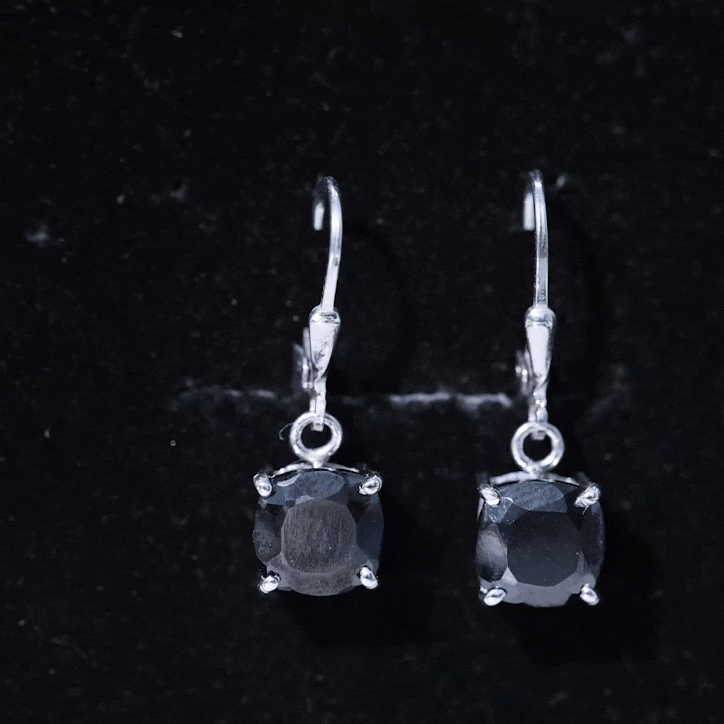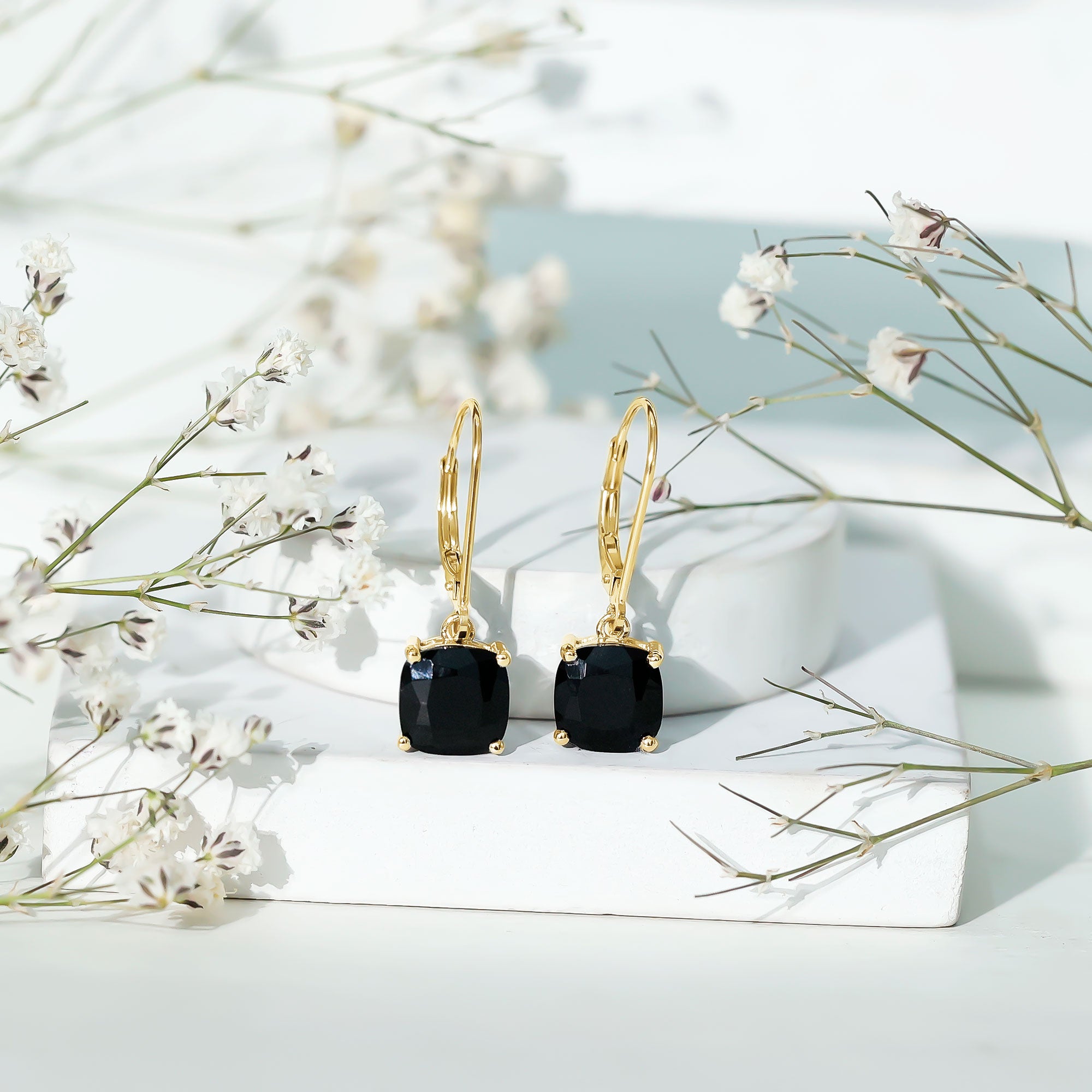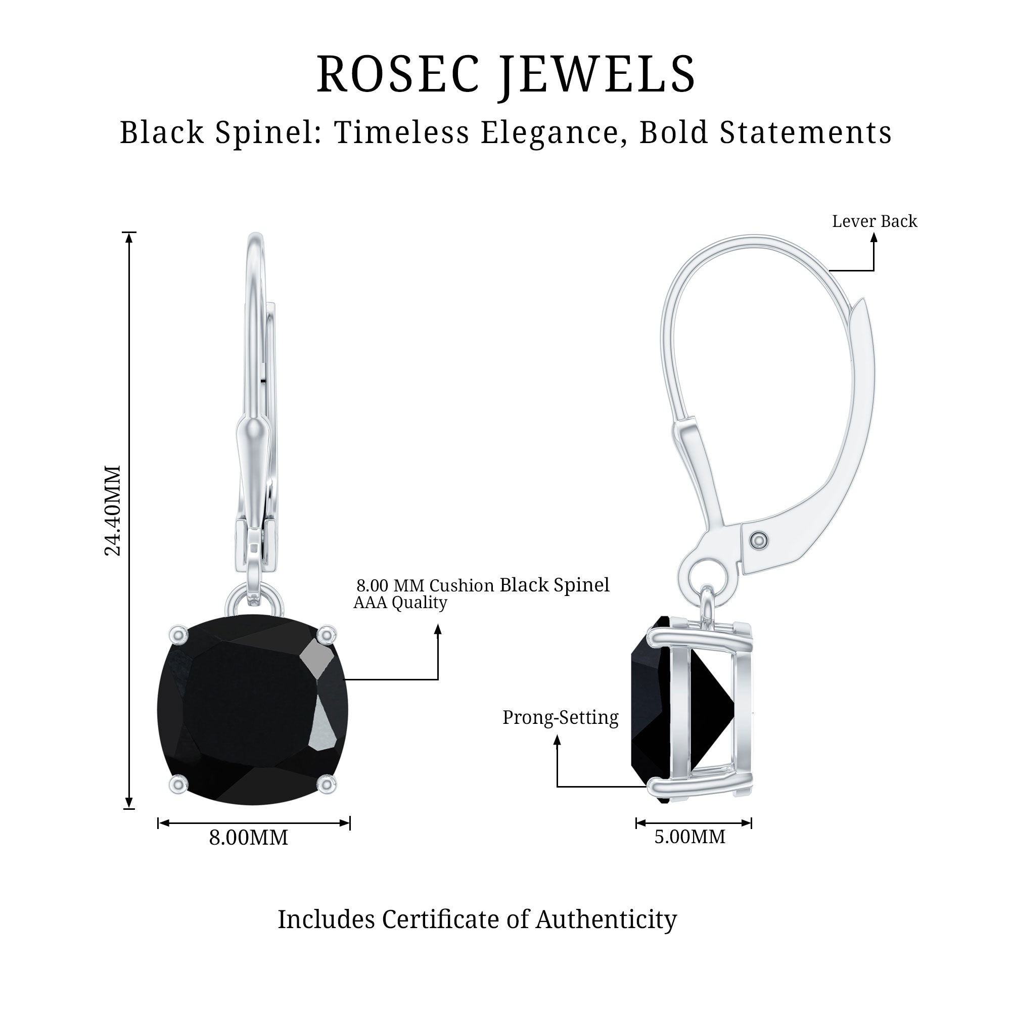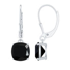 Genuine 8mm Cushion Cut Black Spinel Drop Earrings Lever Back