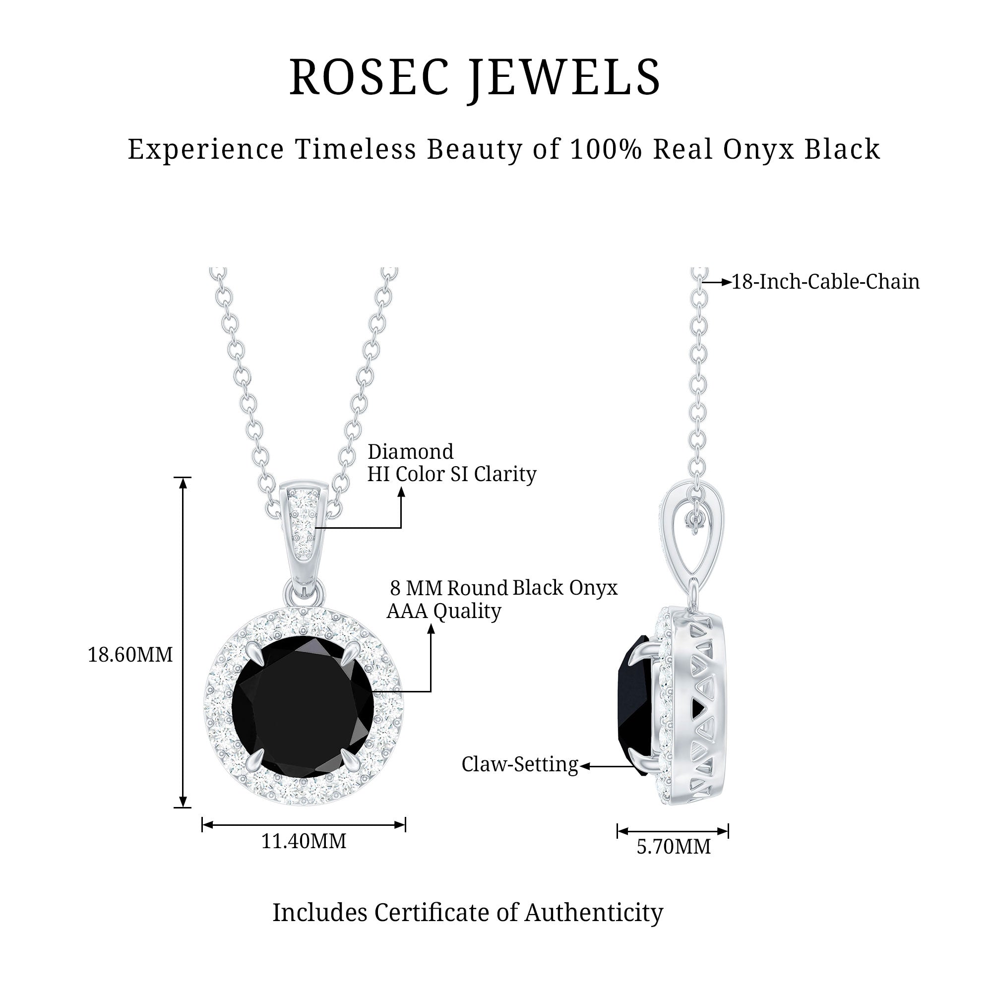 Genuine Black Onyx and Diamond Halo Pendant Necklace