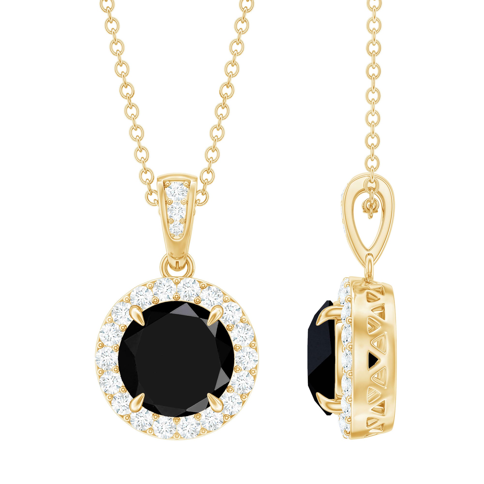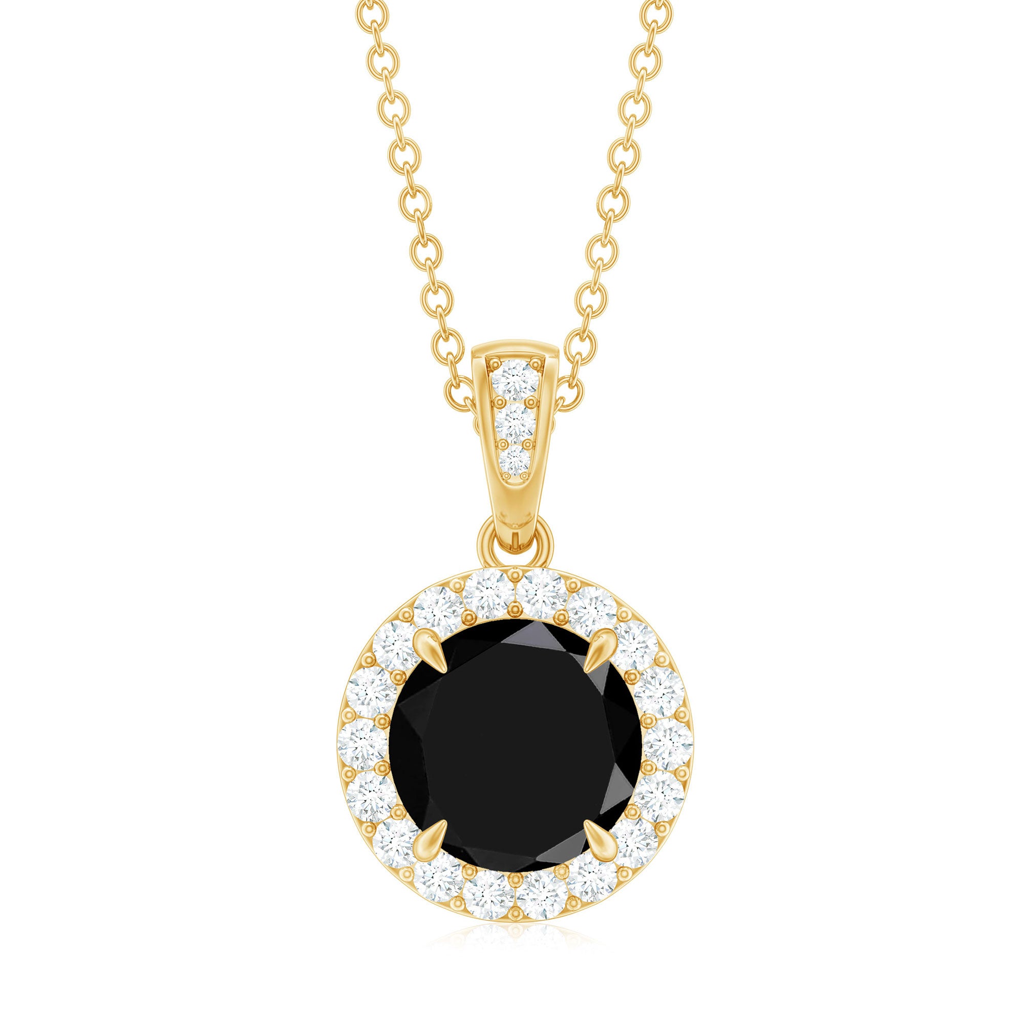 This simple yet elegant Halo Pendant Necklace is adorned with a Round Shape Black Onyx in the center secured by Claw Setting while dainty Round Shape Diamonds are studded as Halo and on the bail of the pendant. Give her a token of your love in the form of this Halo Pendant as an anniversary gift and make her feel special and appreciated on your day of commitment.