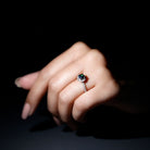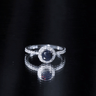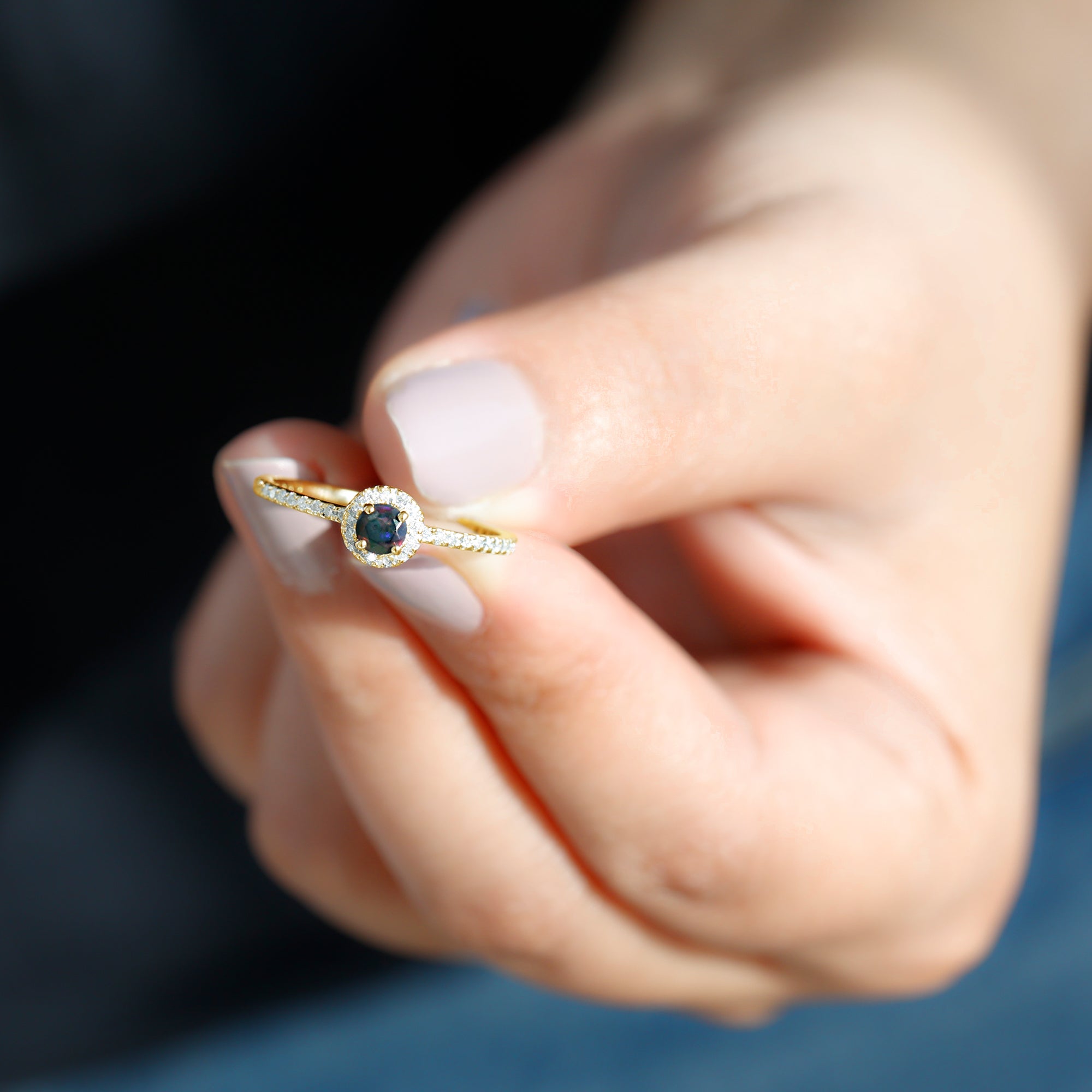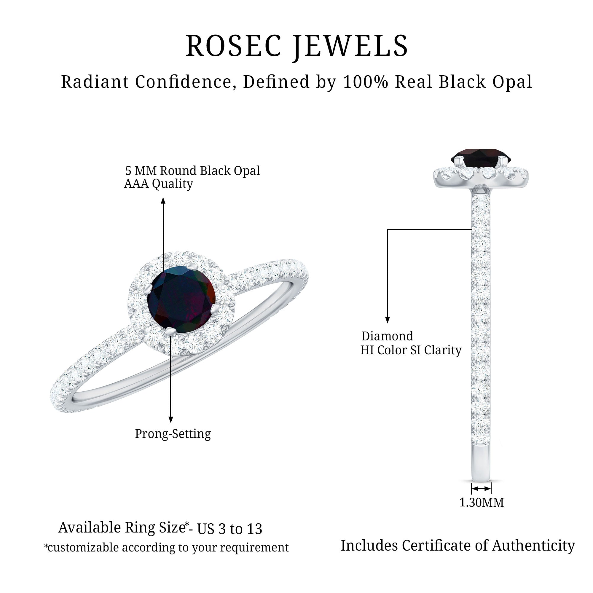 Genuine Black Opal Minimal Promise Ring with Diamond Halo