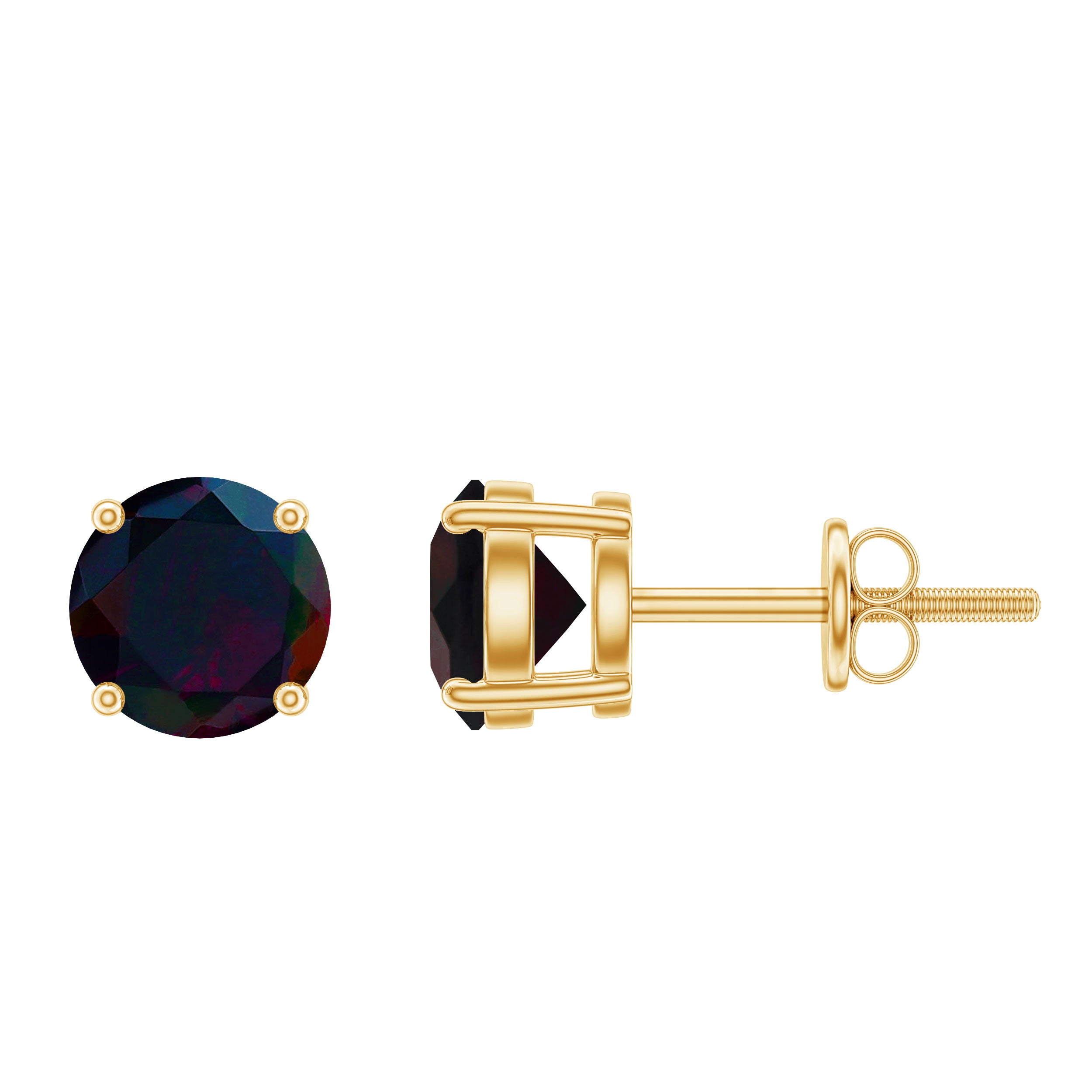 Genuine Black Opal Solitaire Stud Earrings with Screw Back