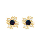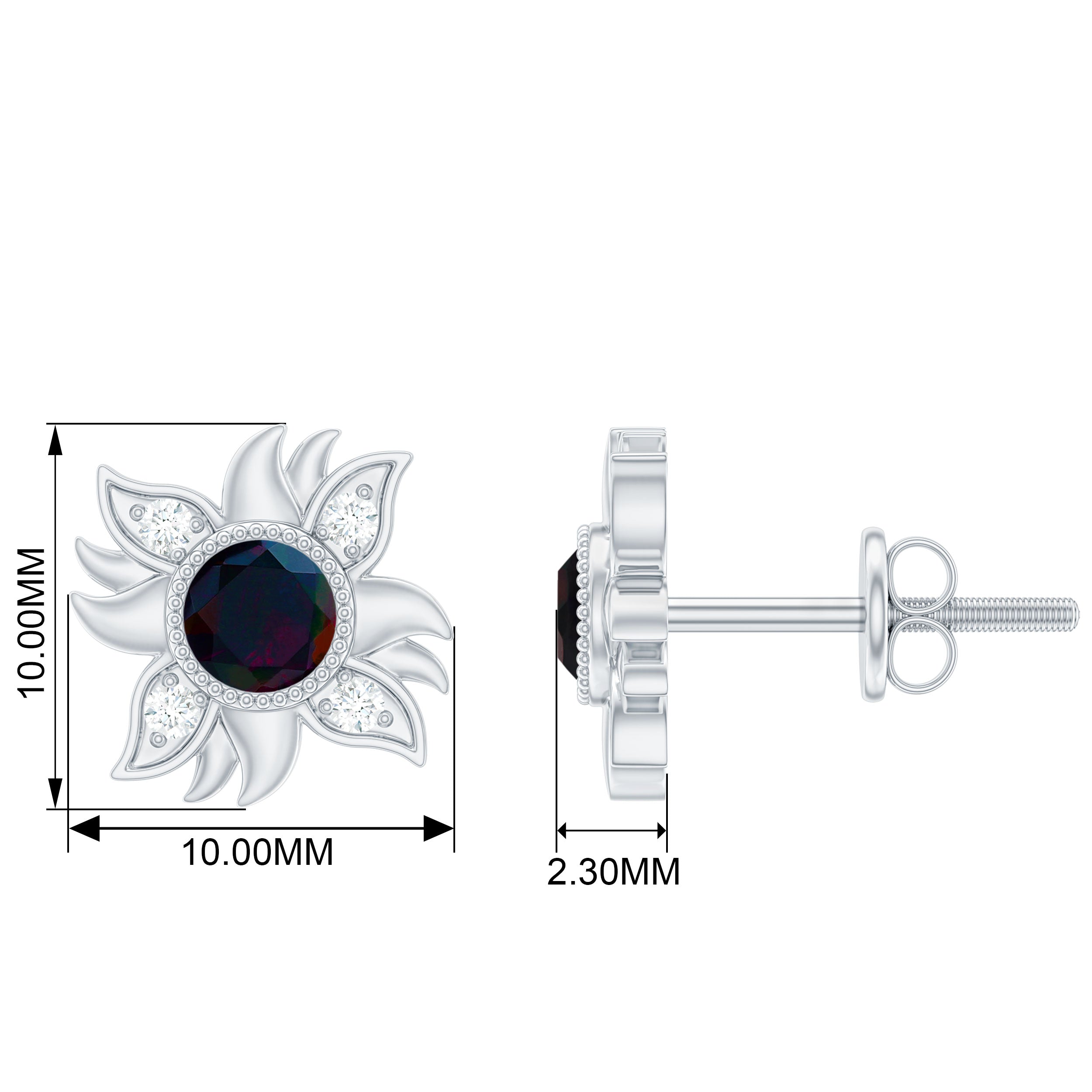Add a touch of glamour to your look with these Sunburst Stud Earrings. These earrings feature Round Shape Black Opal gemstones in a stunning sunburst design, which is perfectly complemented by sparkling Diamond gemstones. The Screw Back ensures that they stay securely in place, making them comfortable and easy to wear. These earrings are designed to last for years to come. Whether youre dressing up for a special occasion or adding some sparkle to your everyday look, these earrings are a perfect choice.