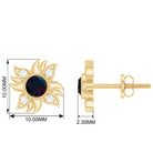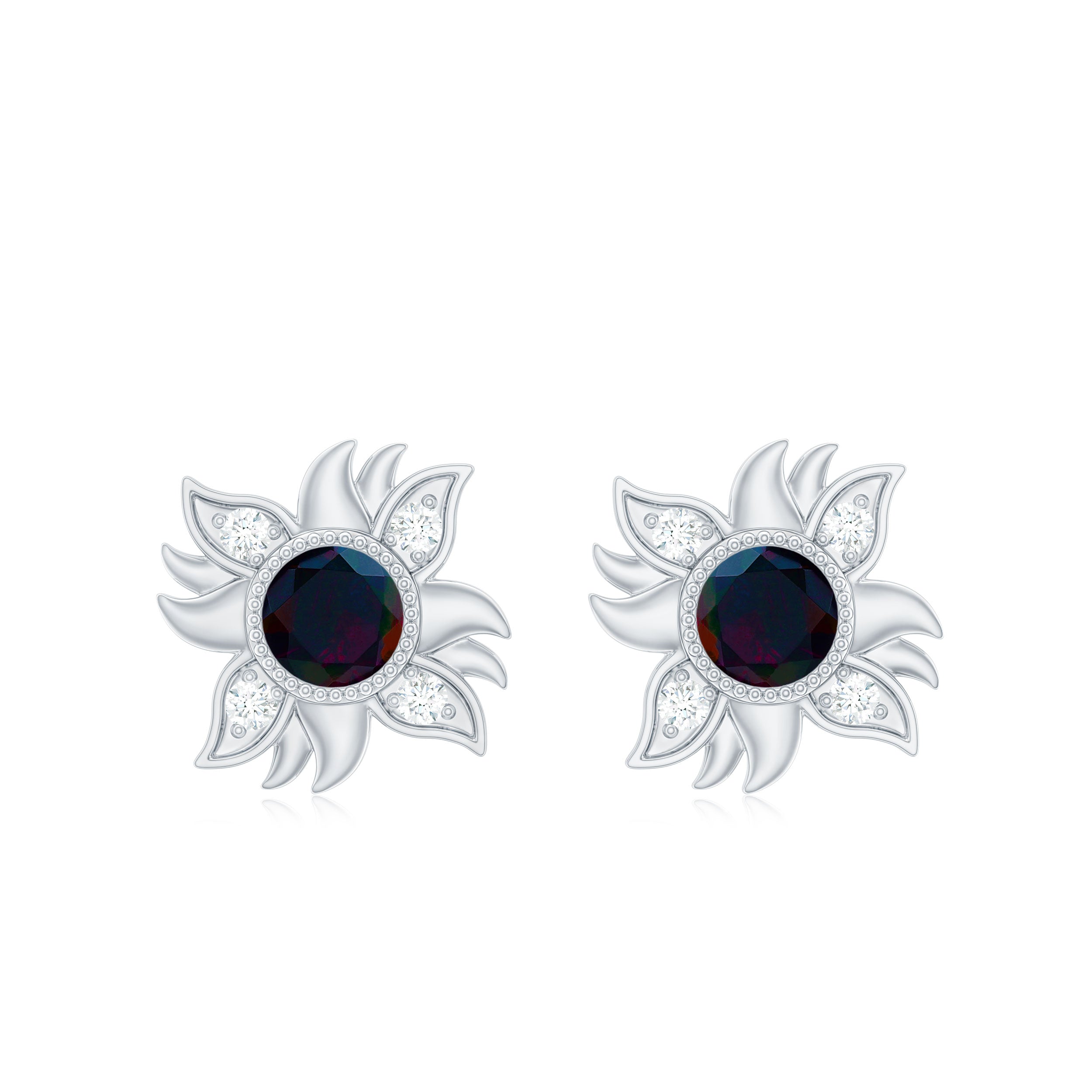 Genuine Black Opal Sunburst Stud Earrings with Diamond