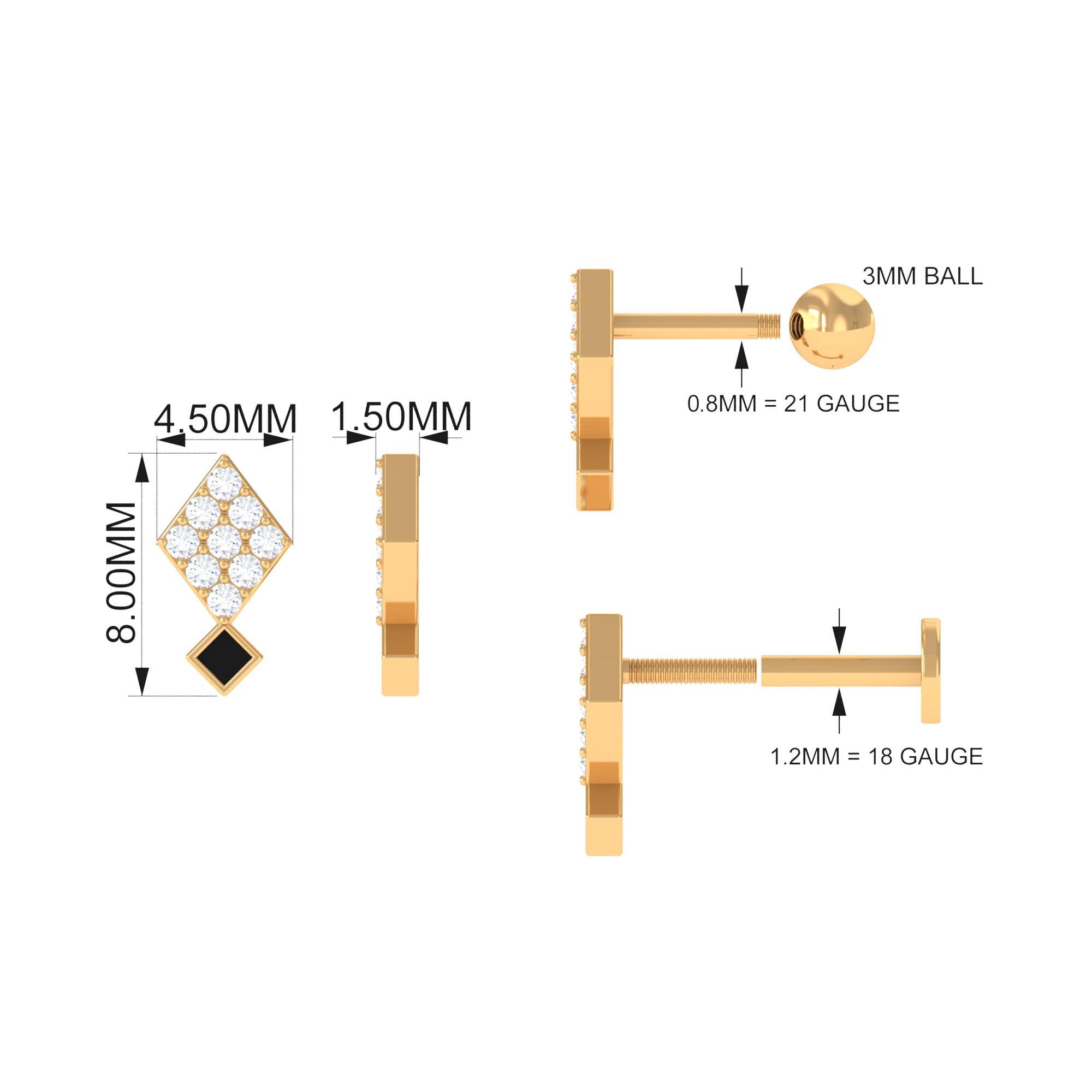 Surprise your best friend with this stunning Diamond Geometric Helix Earring. Featuring a unique geometric design, this earring is encased with round-cut diamonds in a pave setting and adorned with black enamel accents. The combination of diamonds and black enamel creates a striking contrast that is sure to catch attention. This Tragus Earring makes for a perfect birthday gift, and your friend is bound to adore its exquisite beauty.