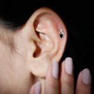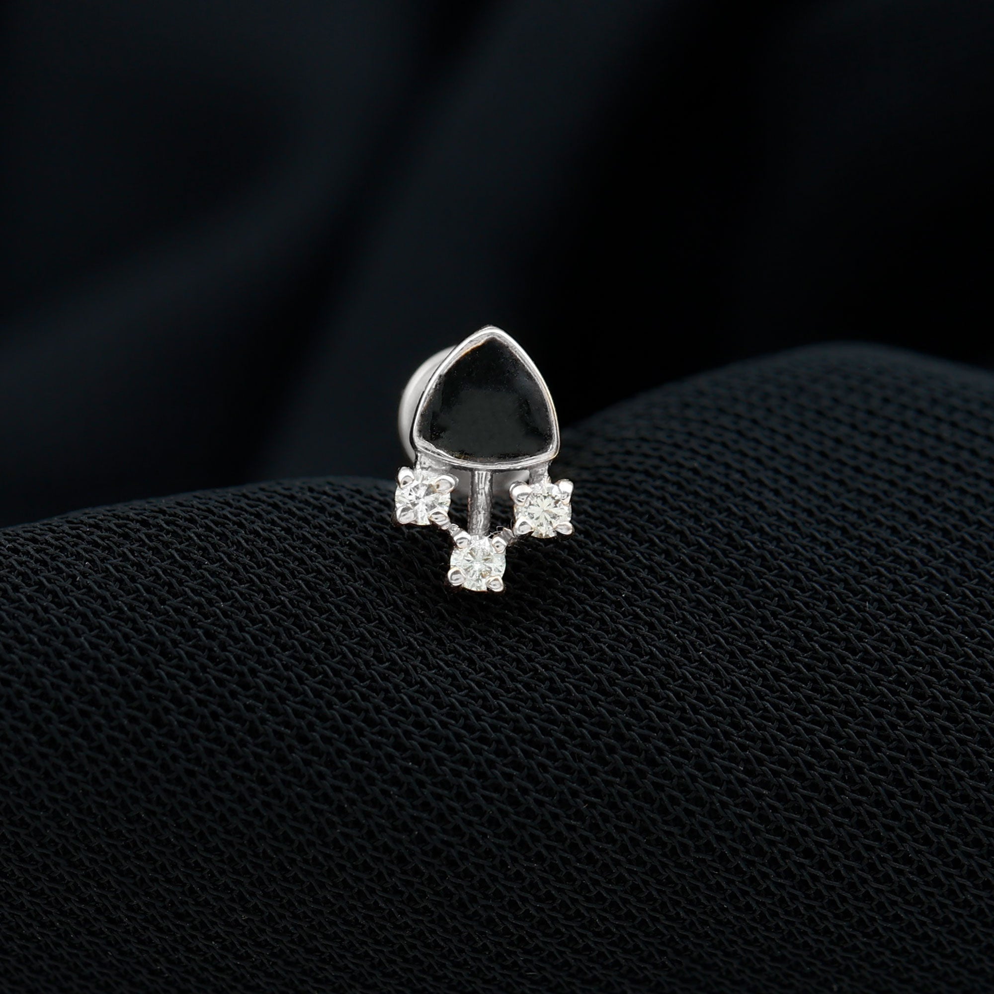 Genuine Diamond Black Enamel 3 Stone Tragus Earring