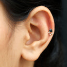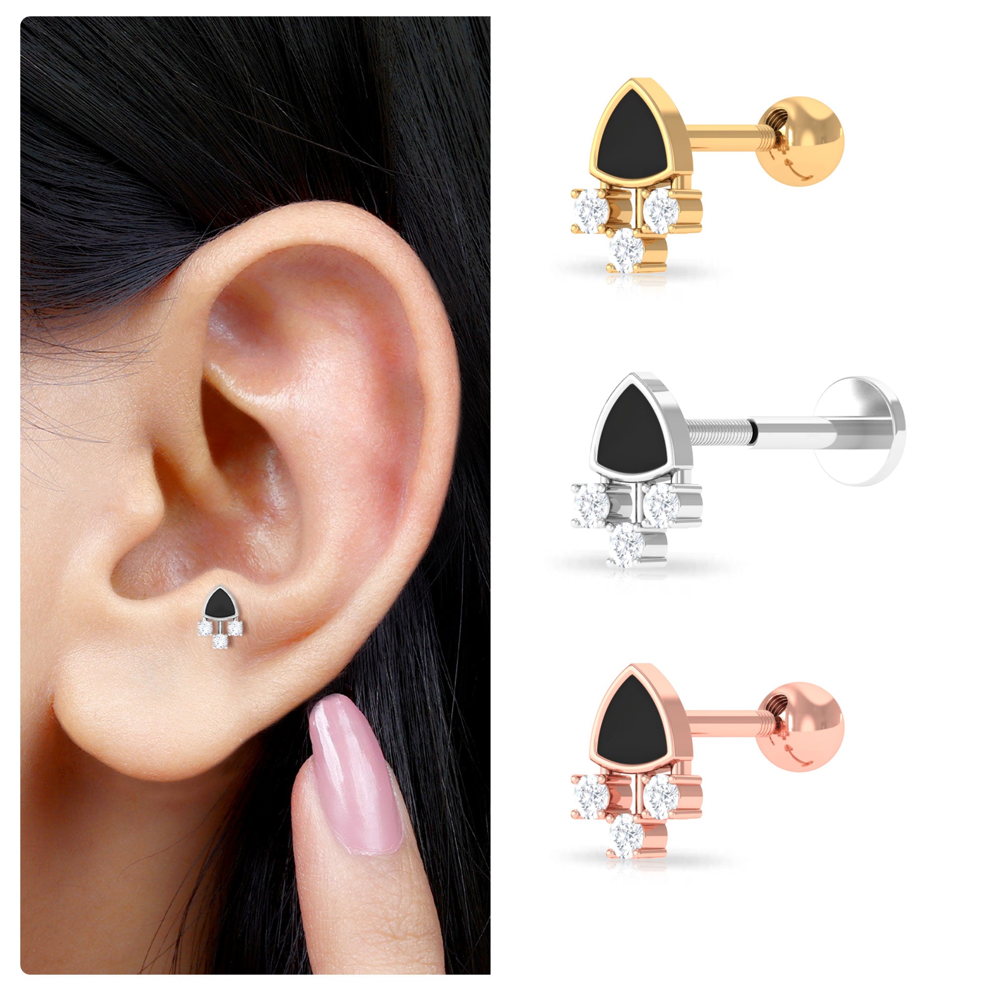 Enhance the charm of your attire with the beautiful and captivating Helix Earring. This Three Stone Earring features Round Cut Diamonds in a Prong Setting, crafted over a unique design for Tragus, Conch, Lobe, Helix, or Cartilage Piercings. It comes with both Flat Back and Ball Screw Back Closures to ensure a secure fit. This Enamel Earring makes a lovely Christmas gift for someone special.