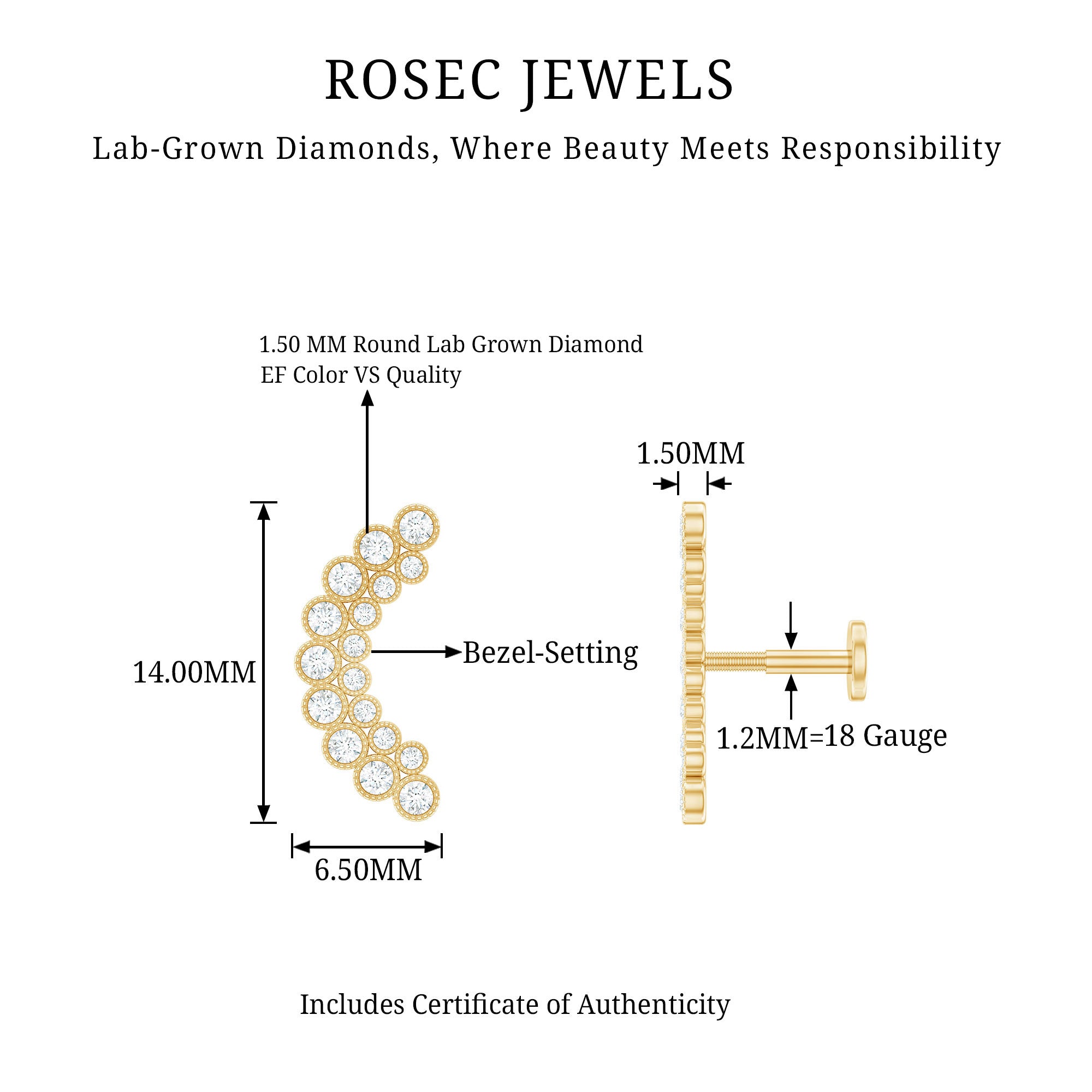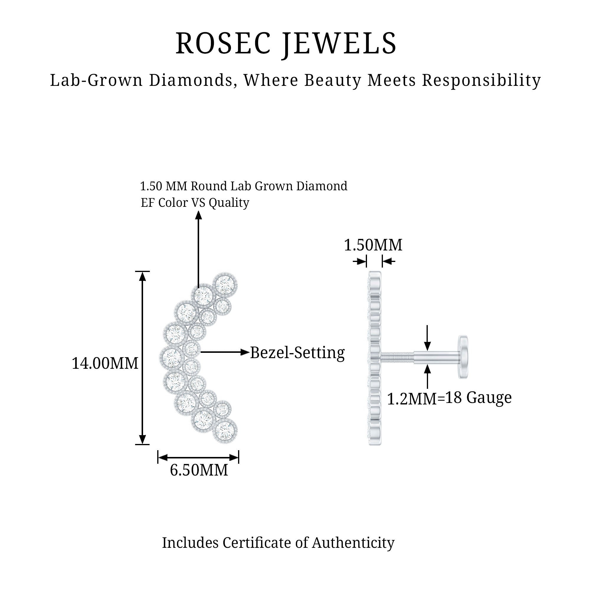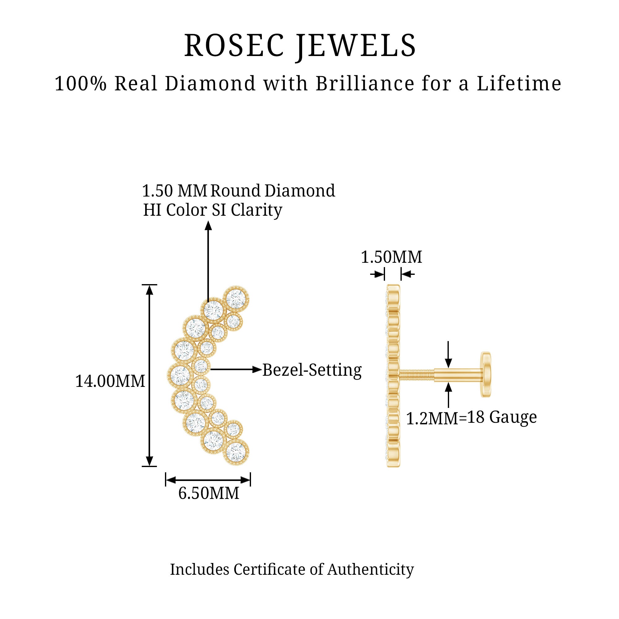 - An intriguing design features two rows of round shape diamonds (certified and ethically sourced) all secured by a bezel setting. Helix Earring to compliment your ear piercings.