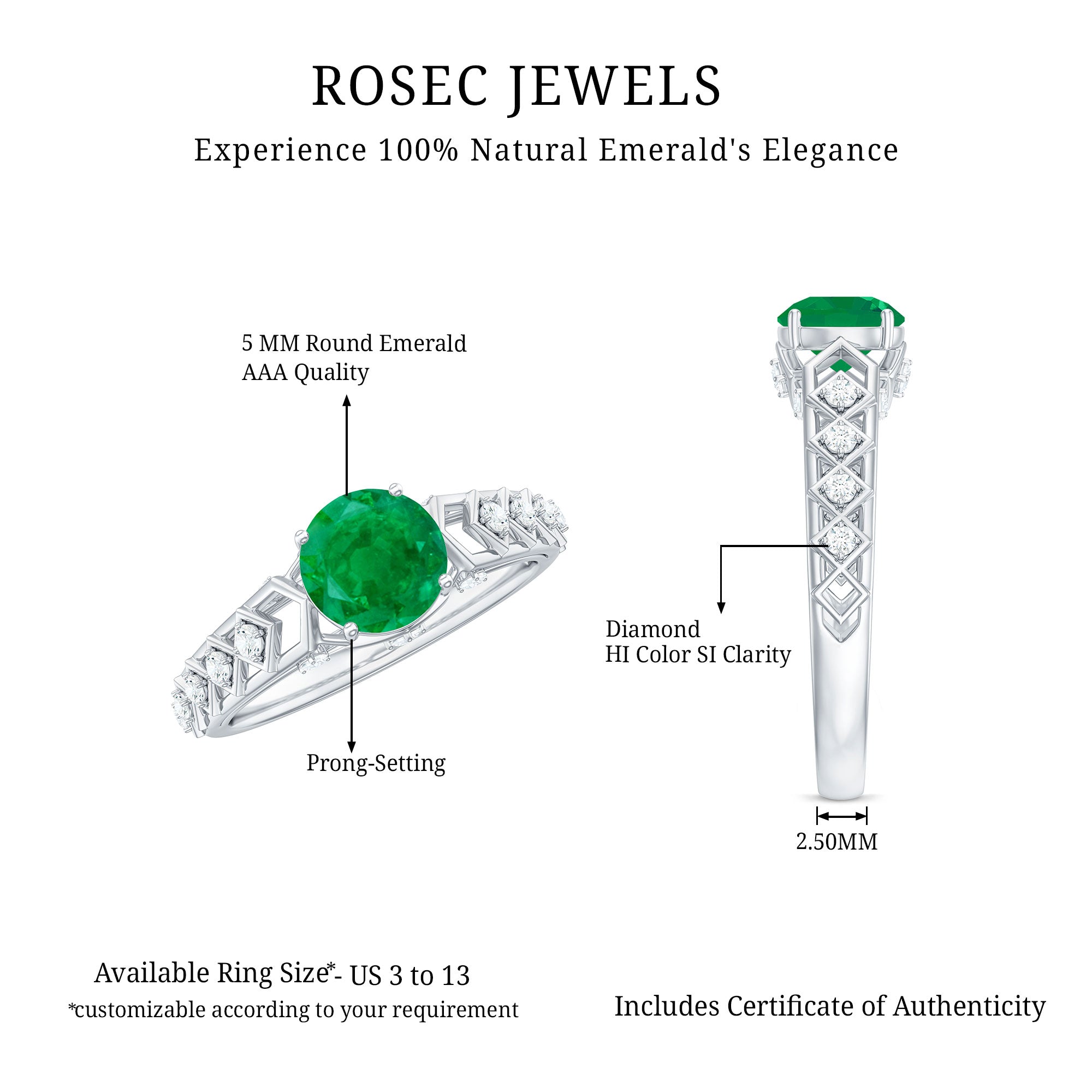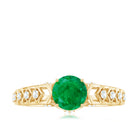 Make your forever moment unforgettable with this exquisite Art Deco Engagement Ring, a timeless piece that captures the romance of a bygone era with a modern twist. The striking 5 mm Round Shape Emerald centerpiece gleams with rich green brilliance, symbolizing a love that stands the test of time. Inspired by the elegance of Art Deco design, this Emerald Solitaire Engagement Ring features intricate geometric detailing, giving it a vintage allure that never fades. Accented by dazzling Diamond stones, this Emerald Diamond Engagement Ring sparkles with sophistication, perfectly balancing boldness and grace. Whether it is the sparkle that catches your eye or the sentiment it carries, this Vintage Emerald Engagement Ring radiates pure emotion and elegance. With its timeless design and heartfelt symbolism, this Natural Emerald Engagement Ring is a timeless expression of two souls destined to shine together forever.