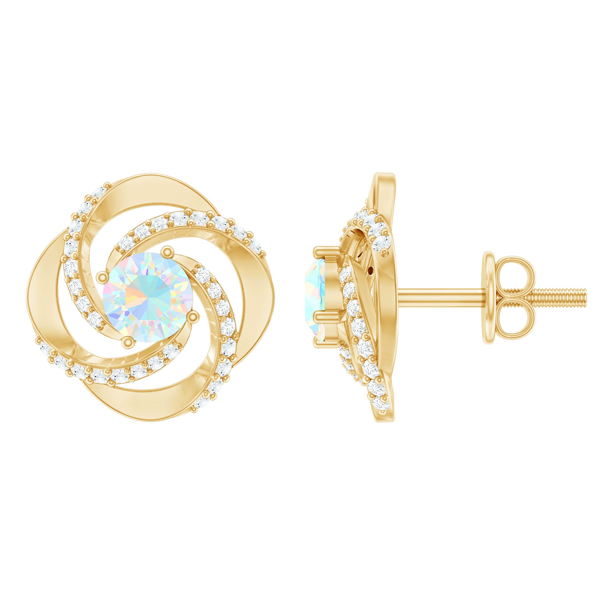 Genuine Ethiopian Opal and Diamond Swirl Stud Earrings