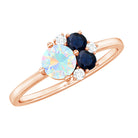 Genuine Ethiopian Opal and Sapphire Cluster Promise Ring with Moissanite
