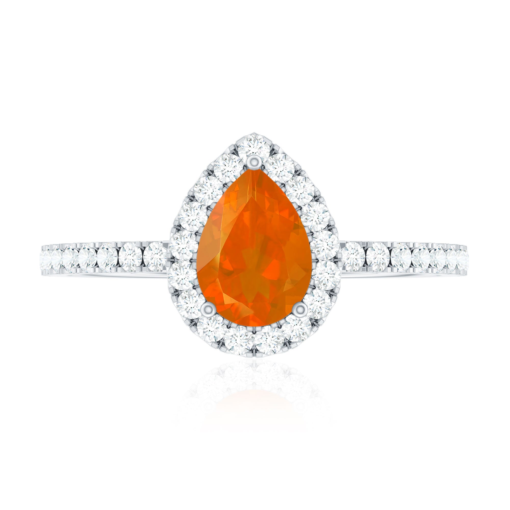 Make a striking statement with this beautiful Fire Opal Engagement Ring, designed for those who love color, warmth, and refined elegance. At the heart of this Teardrop Engagement Ring is a 5X7 MM pear shaped fire opal, held securely in 3 prong setting. Encircling the fire opal is a sparkling diamond halo that adds extra shine and highlights the unique beauty of the center stone. Along the band, round cut diamond side stones are carefully set to bring balance and brilliance to the design. Their soft shimmer perfectly complements the glowing look of the fire opal, creating a stunning contrast that feels both modern and timeless. Crafted with attention to detail, this Fire Opal and Diamond Ring blends colorful charm with classic elegance. Perfect for engagements, proposals, or special milestones, this Halo Engagement Ring symbolizes passion, commitment, and unforgettable moments meant to be cherished forever.