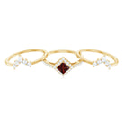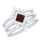 Inspired by the old-world romance, this 3 Piece Wedding Ring Set brings a timeless glow to your forever moment. At its center is a mesmerizing 6 mm Princess Cut Garnet, set diagonally for a touch of bold elegance that instantly stands out. Surrounding the center stone is a sparkling Diamond Halo, paired with shimmering Diamond Side Stones that add depth, radiance and irresistible warmth. Completing the trio are two beautifully Curved Enhancer Rings, each adorned with a graceful combination of Round and Pear Shaped Diamond stones that frame the engagement ring with romantic brilliance. Together, they create a stunning layered look filled with emotion. Perfect for the bride who adores classic beauty with a modern twist, this Garnet Engagement Ring with Wedding Band arrives in a signature jewelry box and is available in a range of ring sizes to ensure the perfect fit. Crafted to symbolize eternal devotion, this breathtaking Princess Cut Engagement Ring Set becomes a lasting reminder of love that never fades.