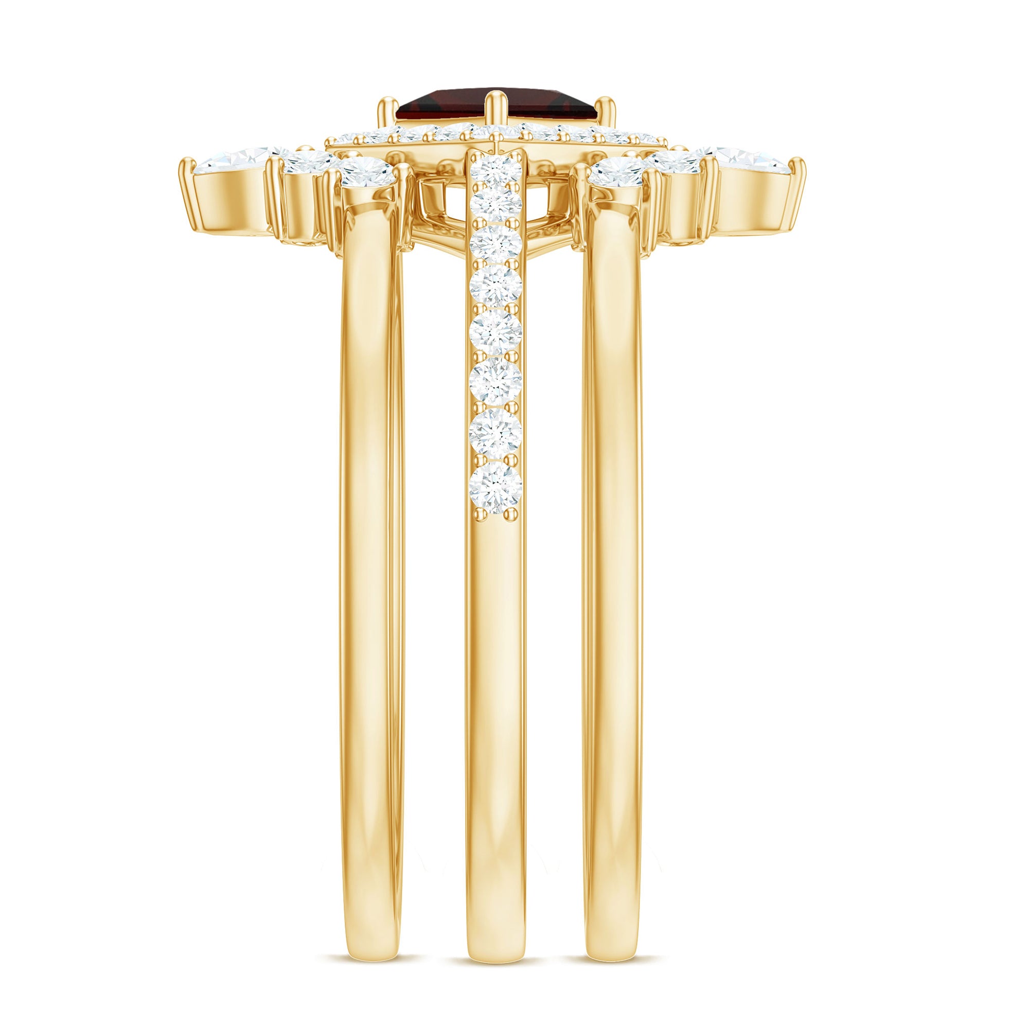 Natural Garnet Diamond 3 Piece Bridal Ring Set