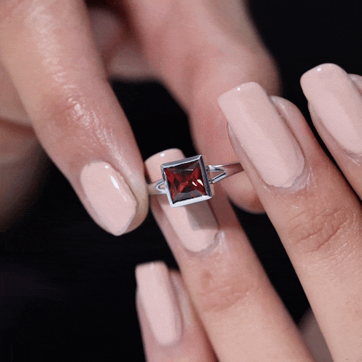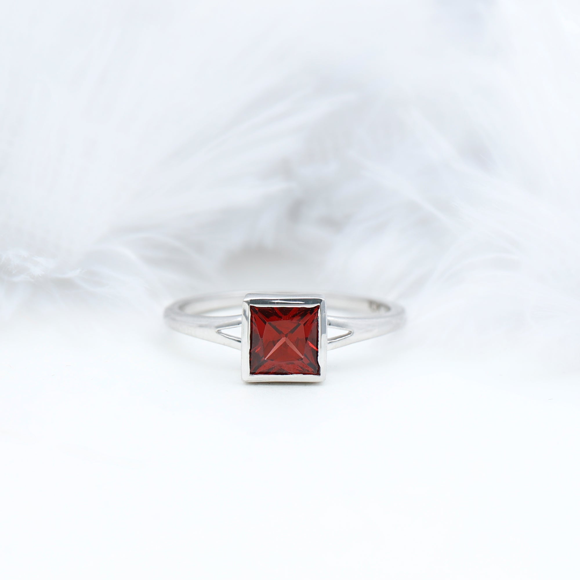 Delicate yet striking, this Princess Cut Engagement Ring is the perfect expression of timeless love and modern elegance. The stunning 6 mm Princess Cut Garnet center stone set in Bezel Setting captures the light from every angle. The Split Shank design adds a touch of sophistication, drawing attention to the center stone while offering a sleek, contemporary look. The elegant design perfectly balances classic beauty with a modern twist, making this Garnet Engagement Ring the ideal choice for someone who appreciates both tradition and trend. Whether it is for your engagement or an unforgettable milestone, this Bezel Set Engagement Ring serves as a meaningful token of your love story, designed to be cherished for a lifetime. The Split Shank allows for a comfortable fit while giving the ring a unique look. Available in a variety of sizes and presented in a chic jewelry box, this Split Shank Engagement Ring is ready to make any occasion unforgettable. A beautiful reminder of a love that will last forever.
