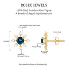 Genuine London Blue Topaz and Diamond Flower Stud Earrings