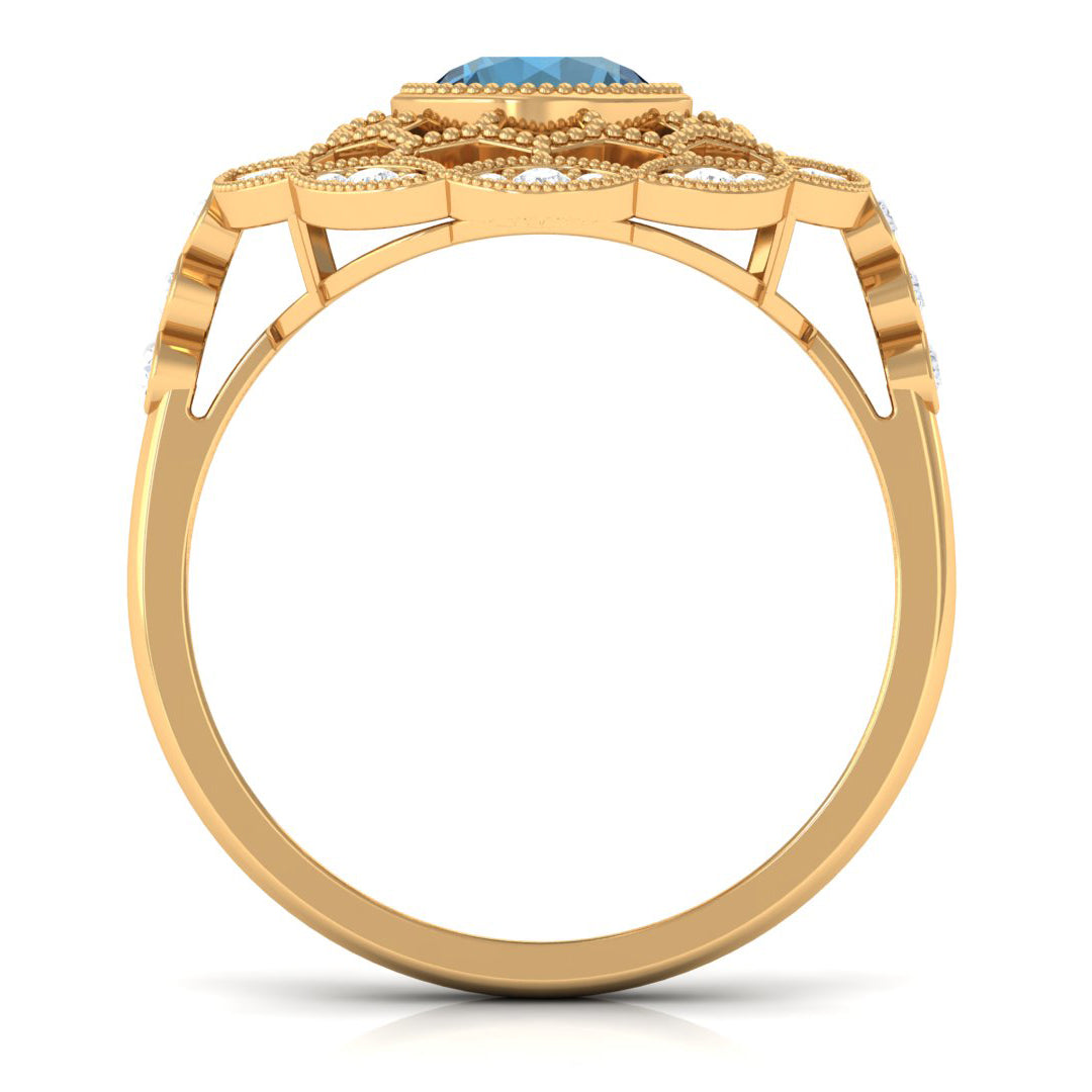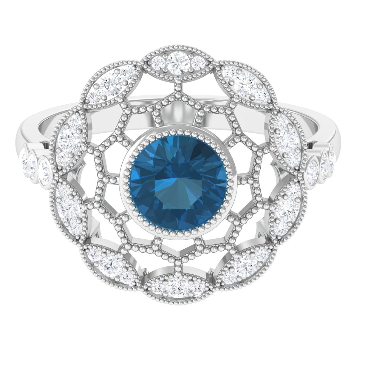 Genuine London Blue Topaz and Diamond Statement Ring with Beaded Details