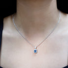 Genuine London Blue Topaz Emerald Cut Necklace with Diamond Halo