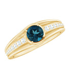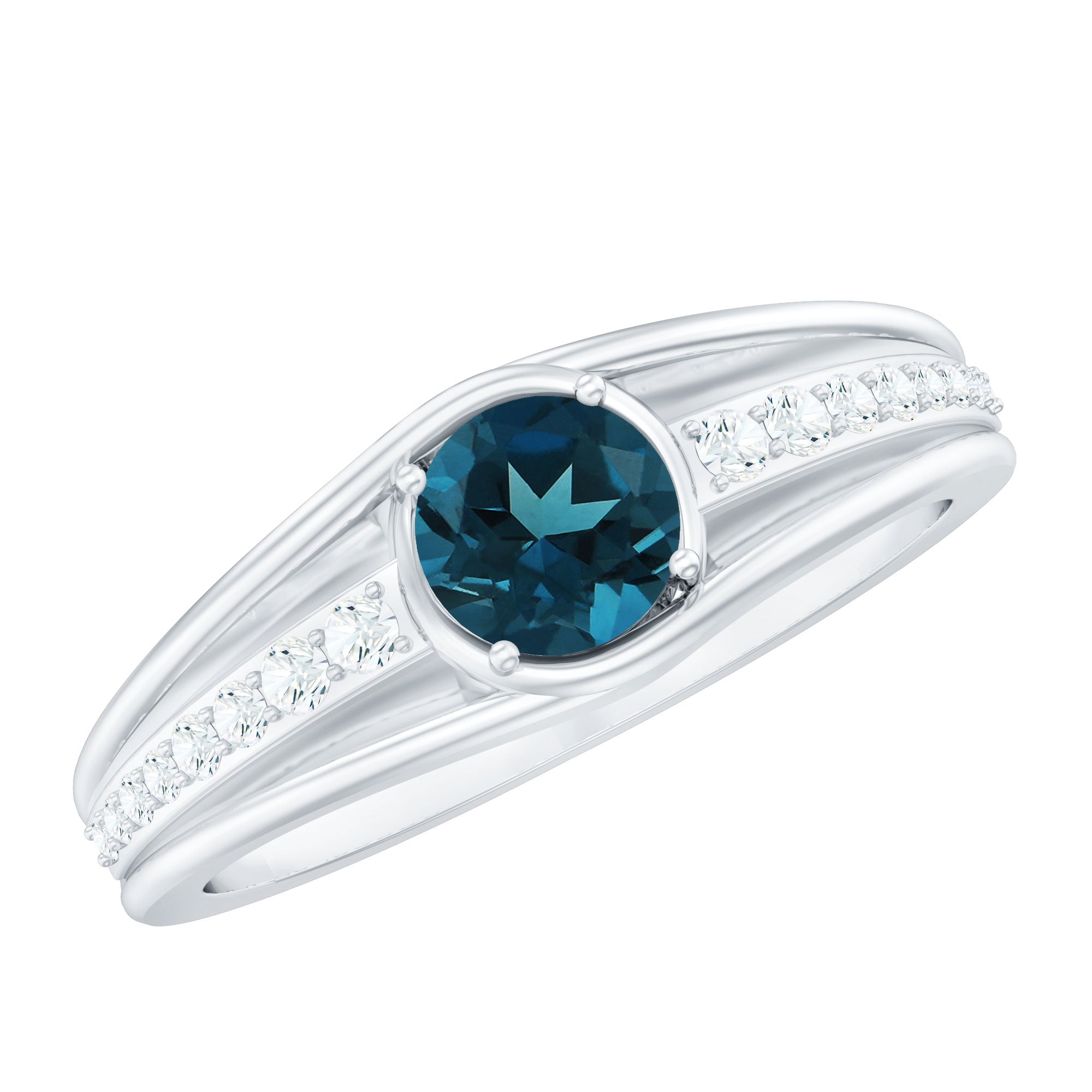 Genuine London Blue Topaz Engagement Ring with Diamond Side Stones