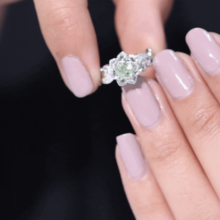 Bring a touch of romance and natures beauty to your special moment with this beautiful Peridot Flower Engagement Ring, designed to become a meaningful keepsake for years to come. The ring features a lovely 5 MM round shaped peridot placed in prong setting at the center of a rose-inspired metal flower. On both sides of the floral center, delicate leaf details add to the garden-like design, while the shank is decorated with round brilliant cut diamonds that provide extra shine. The graceful floral arrangement highlights the center stone and gives the Peridot Engagement Ring a storybook feel, perfect for a romantic proposal. Crafted with careful attention to detail, the design blends artistic elements with meaningful symbolism, making it more than just a piece of jewelry. The AAA quality peridot and HI-SI quality diamonds offer beautiful sparkle that will remain timeless over the years. The floral theme reflects love, growth, and new beginnings, making the Peridot and Diamond Ring a thoughtful symbol of commitment. A ring like this is not only a promise of love but also a treasured piece that can be admired and cherished for a lifetime.
