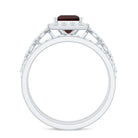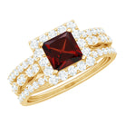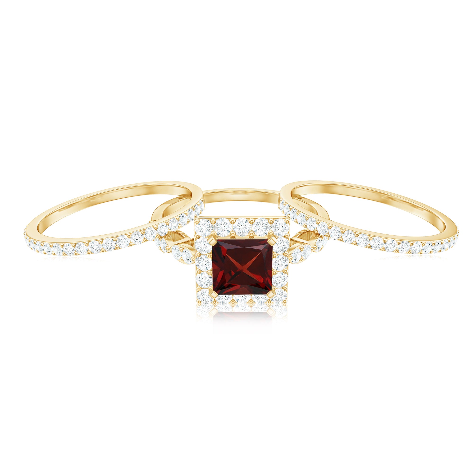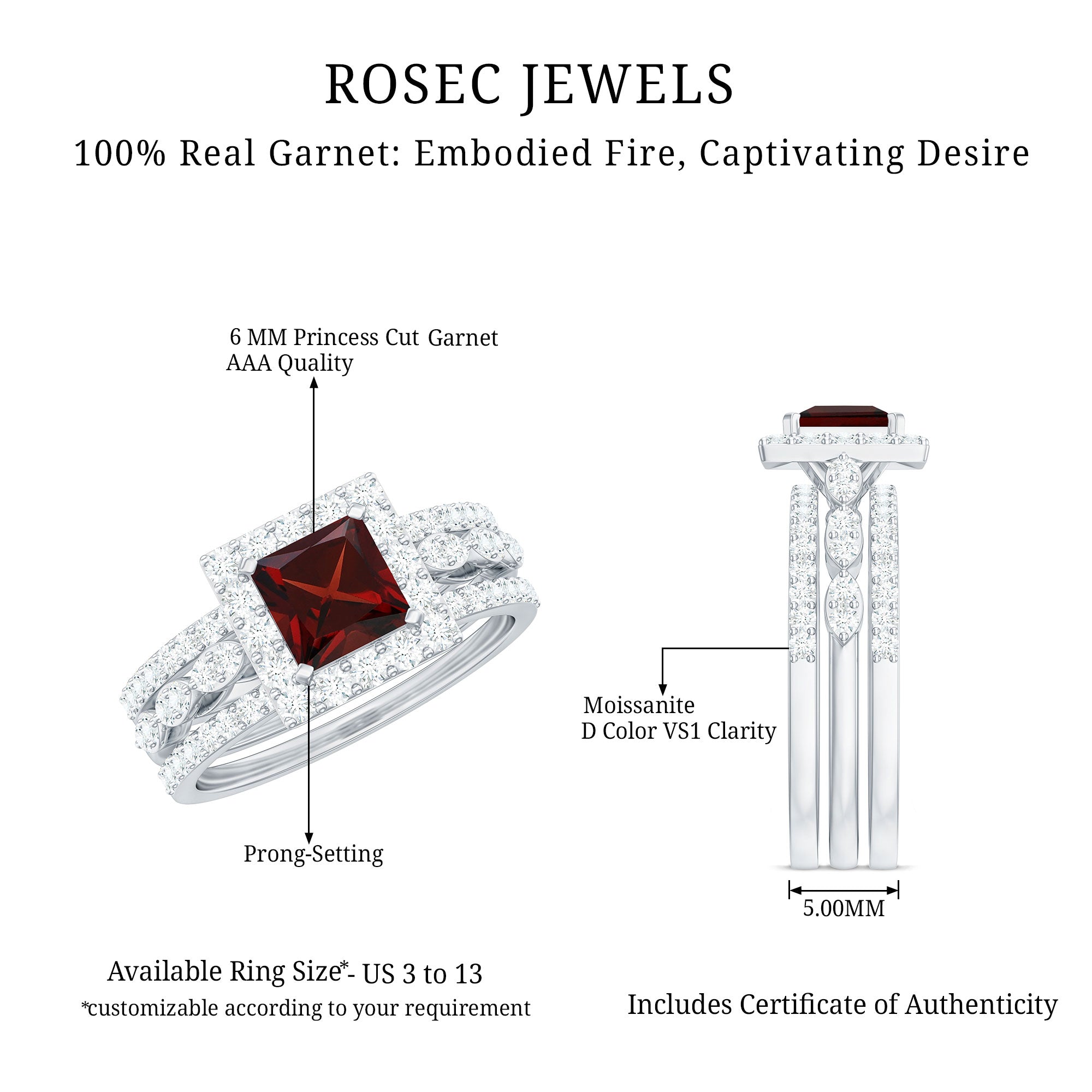 Genuine Princess Cut Garnet 3 Piece Bridal Ring Set with Moissanite