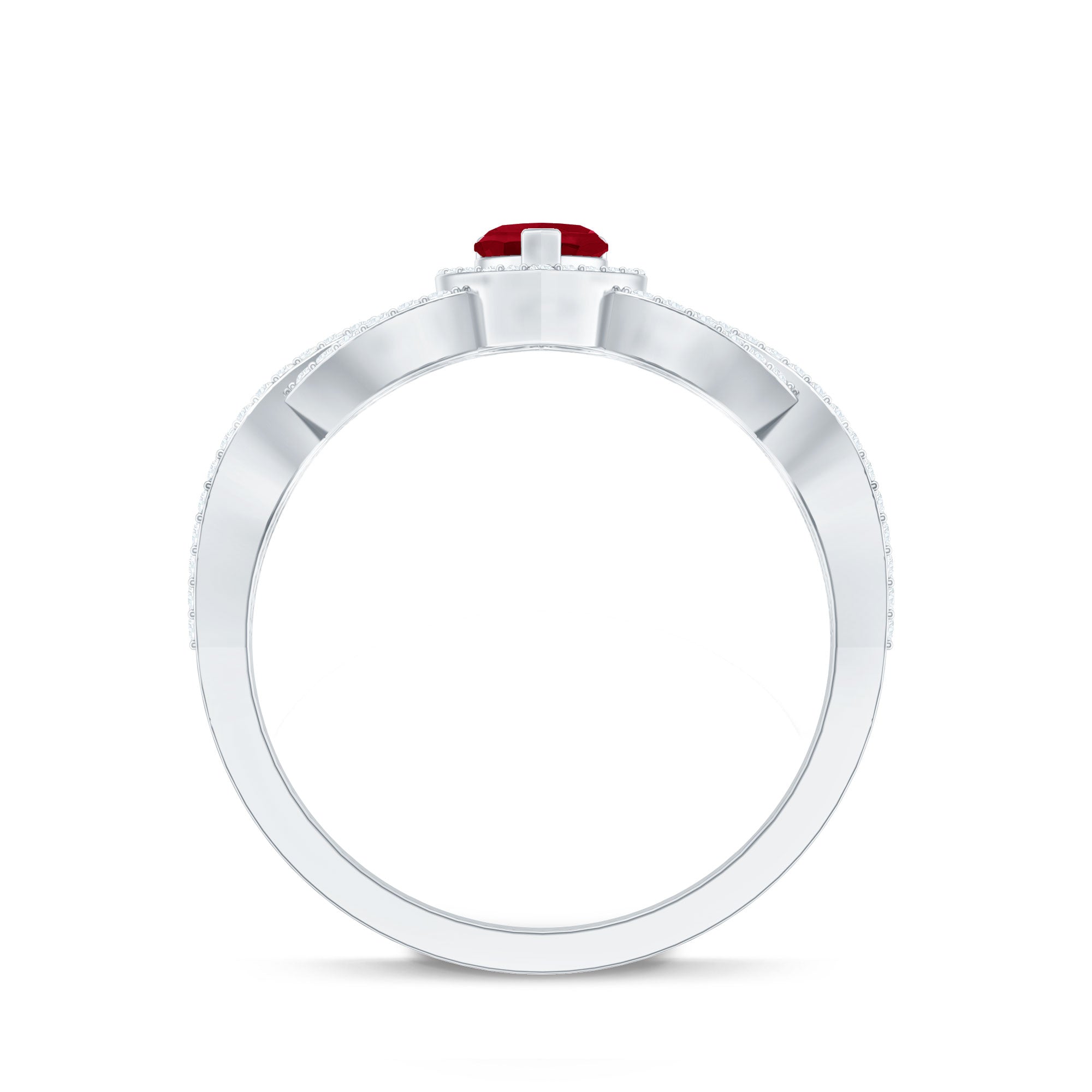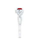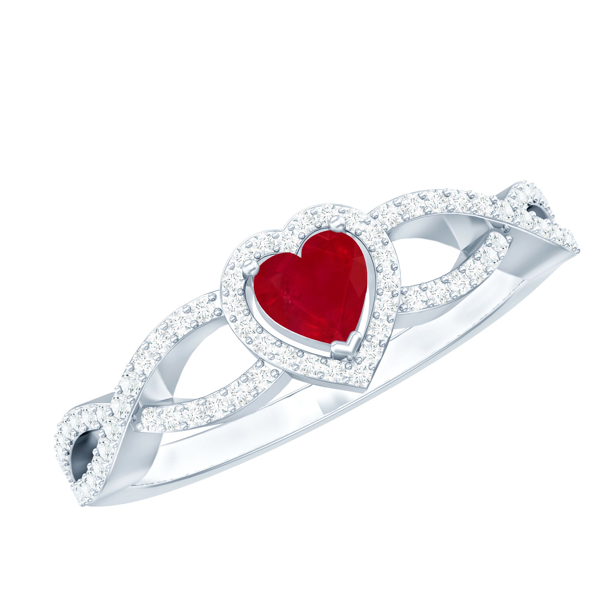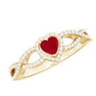 Genuine Ruby Heart Crisscross Engagement Ring with Diamond