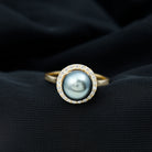 Experience the everlasting allure of this exquisite Tahitian Pearl Engagement Ring, crafted to draw attention with its radiant glow and sophisticated design. At the heart of the ring lies an 8 MM round Tahitian pearl, delicately surrounded by a halo of shimmering diamonds, which enhances the beauty of the central stone. A charming detail lies beneath the center stone - a tiny hidden diamond placed in a bezel setting. As the birthstone for June, pearls embody significant meanings of purity, wisdom, and new beginnings. This makes the Pearl and Diamond Engagement Ring a thoughtful selection for those born in June or for anyone who values the serene and romantic charm of a genuine Tahitian pearl. The striking contrast between the AAA quality black Tahitian pearl and the bright HI-SI quality diamonds gives the Halo Engagement Ring a distinctive appeal that gracefully stands out. This Tahitian Black Pearl Ring is a token of love, sophistication, and new journeys.