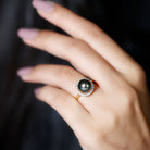 Genuine Tahitian Black Pearl and Diamond Engagement Ring