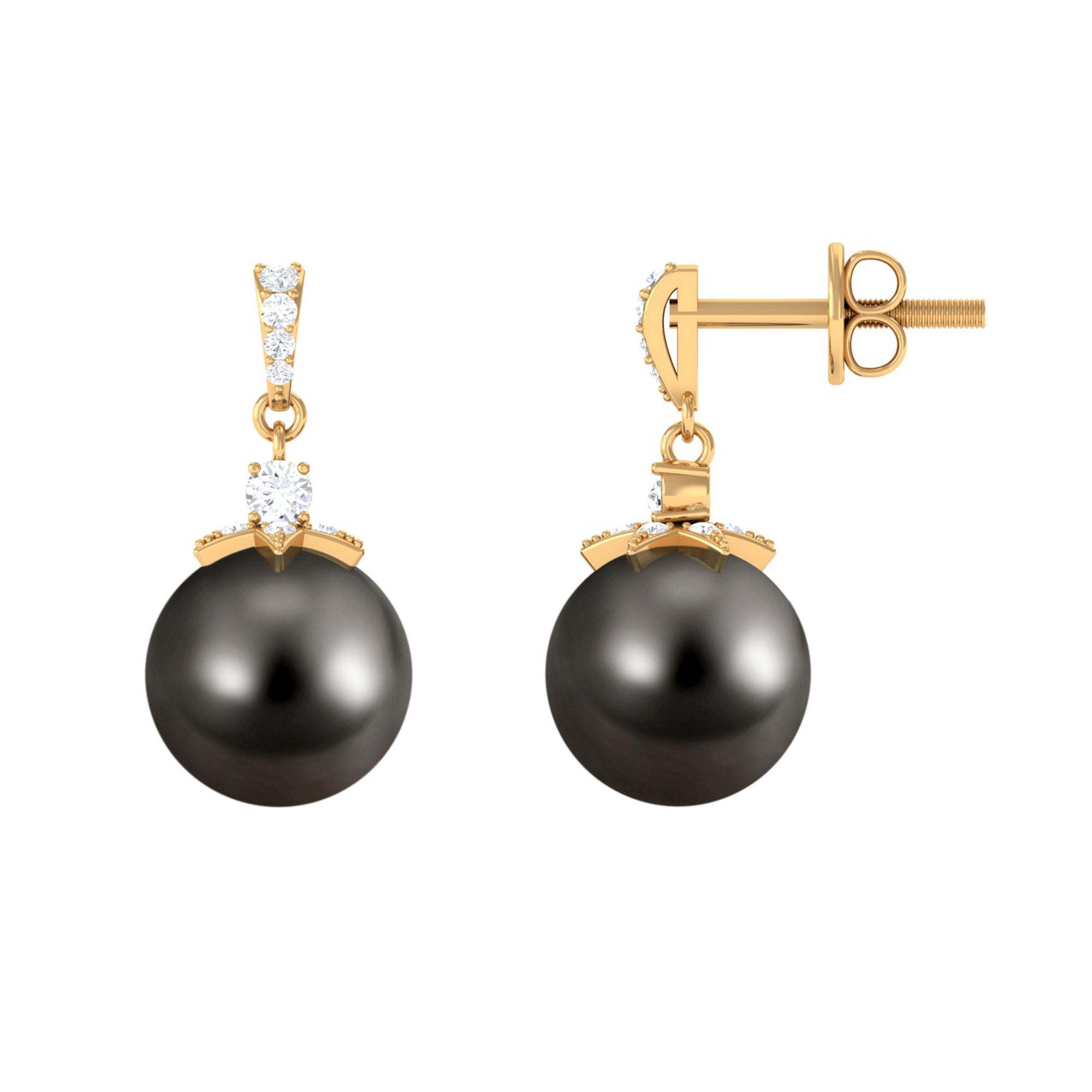 These Drop Earrings will add charm to your surroundings with their beauty. The Screw Back Earrings showcase Round Shape Tahitian Pearl while dainty Round Cut Diamonds add a touch of sparkle to your look. The Tahitian Pearl Earrings have a screw-back closure for securing them in their place. Our Stud Earrings will make a sparkling addition to your collection of fine jewelry.