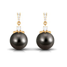 Genuine Tahitian Pearl and Diamond Drop Earrings