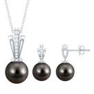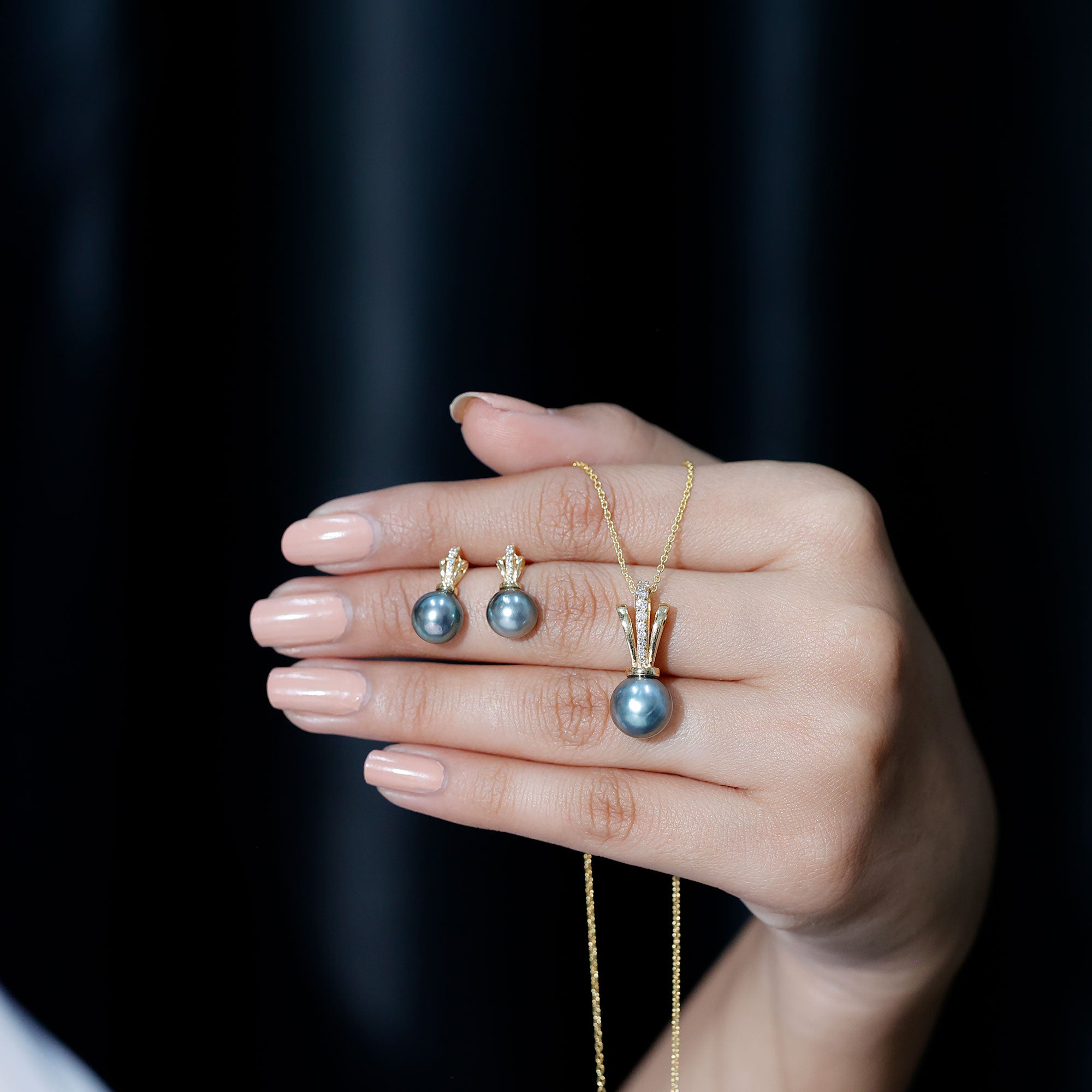 Genuine Tahitian Pearl and Diamond Drop Necklace Earrings Set