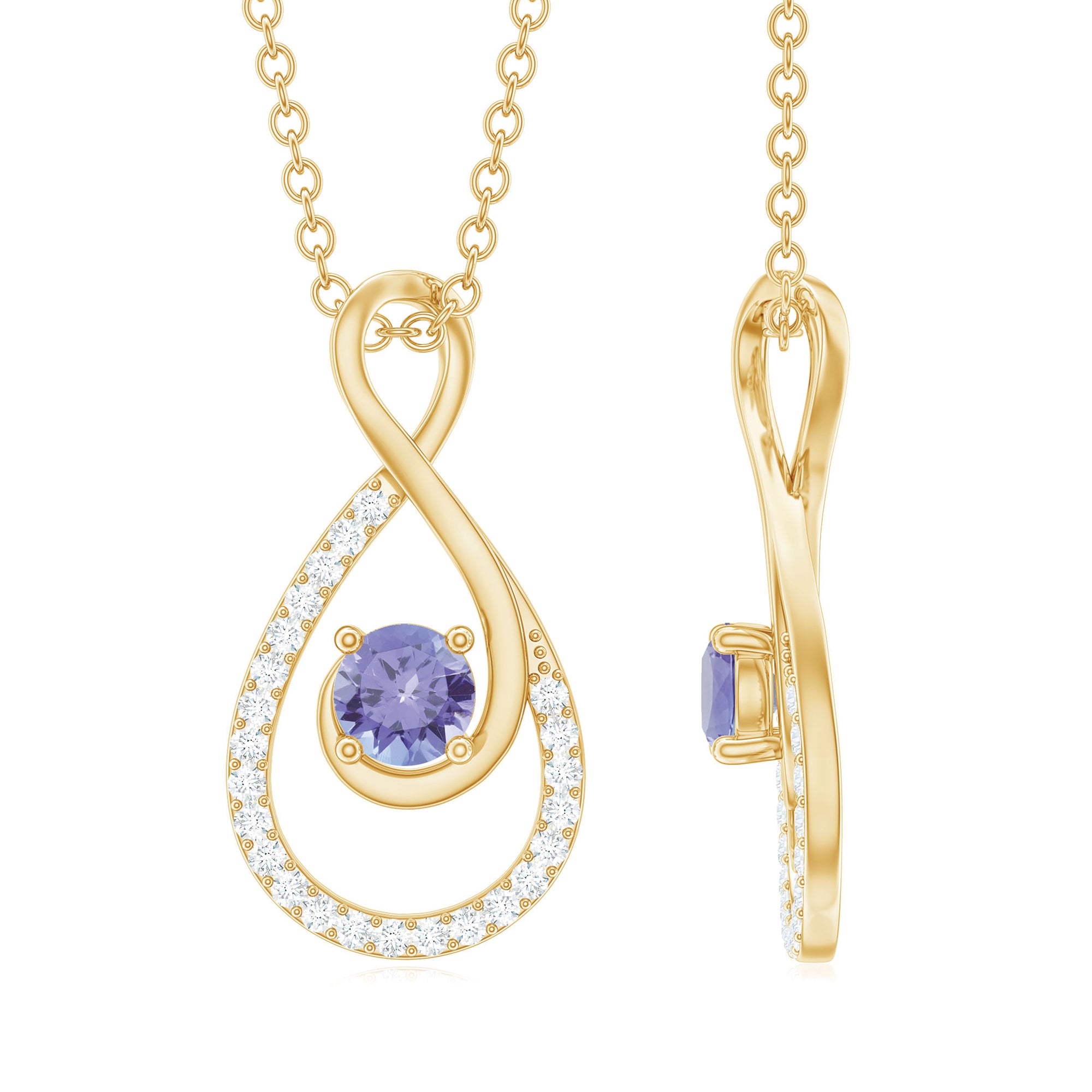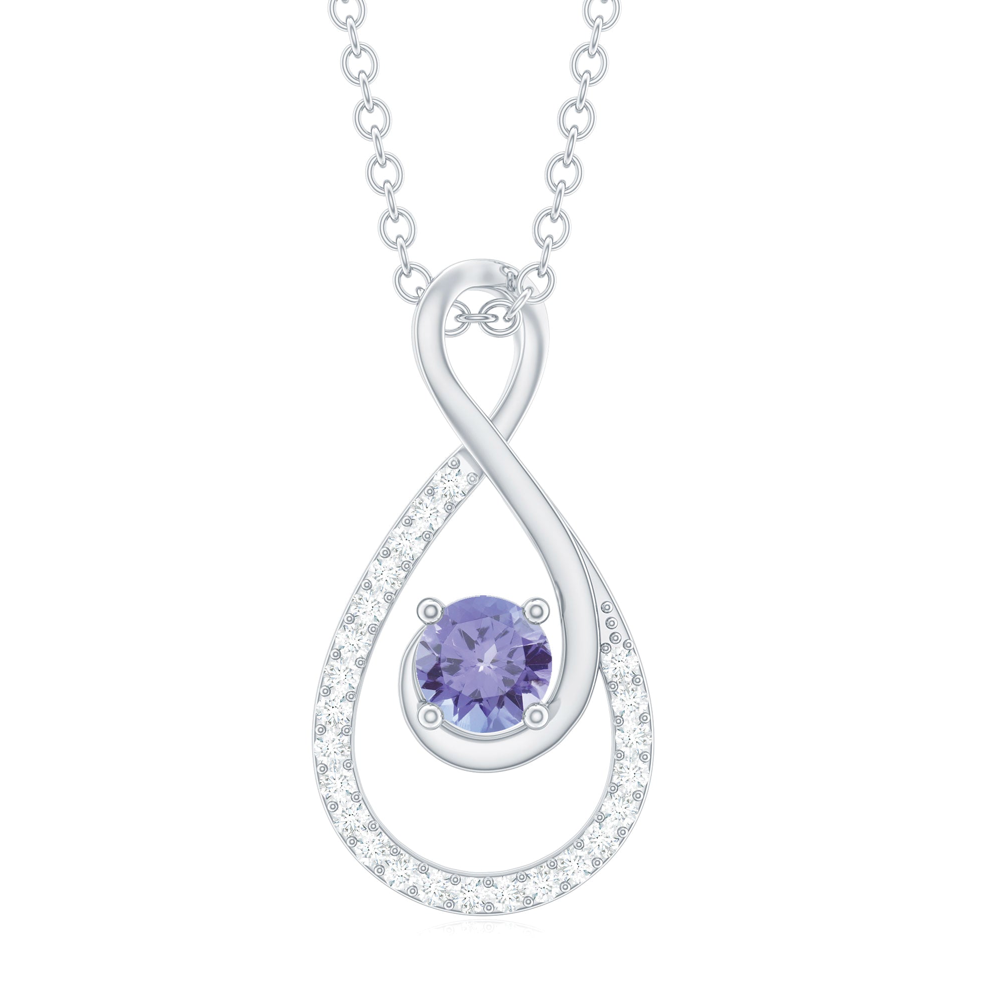 Genuine Tanzanite and Diamond Infinity Pendant Necklace With Chain