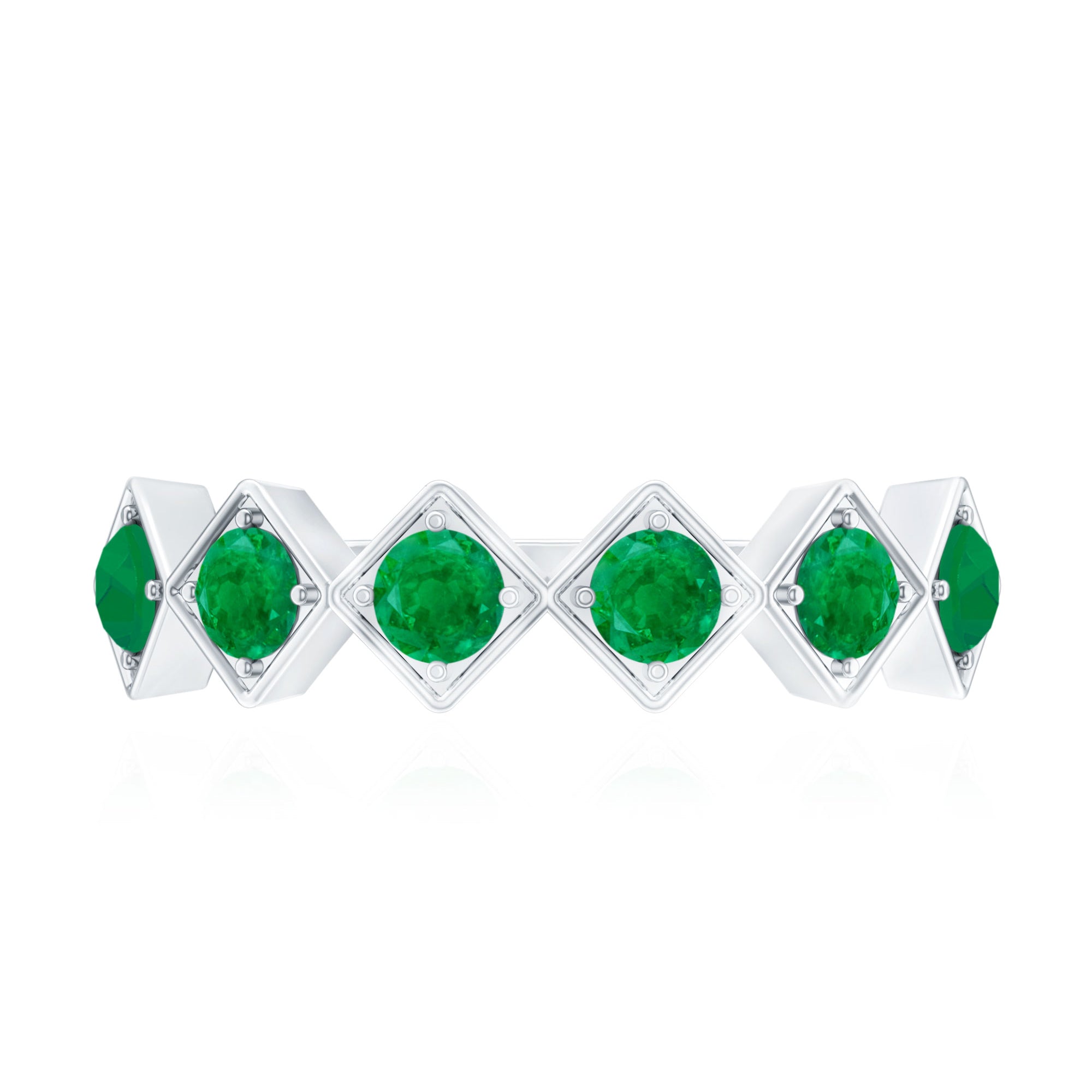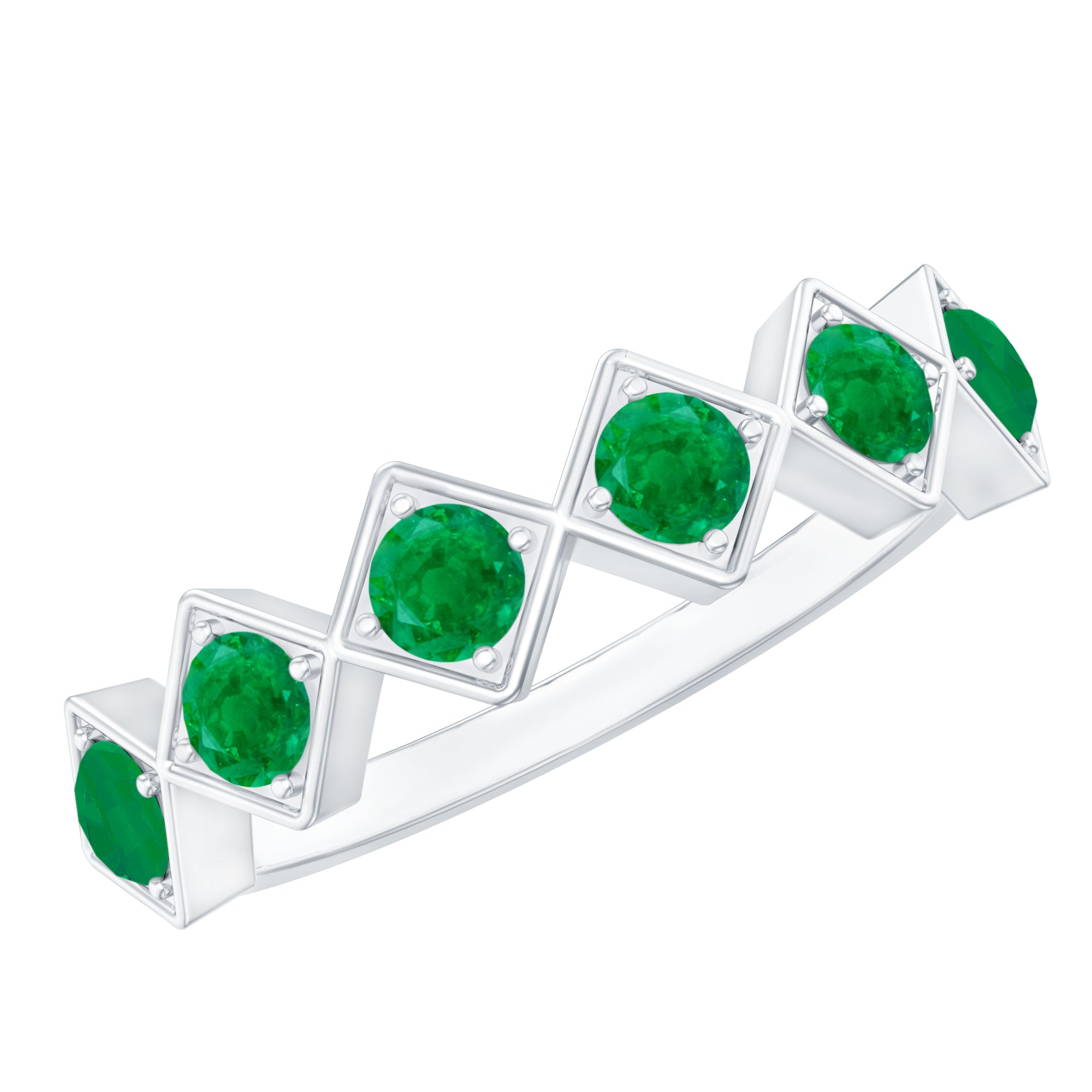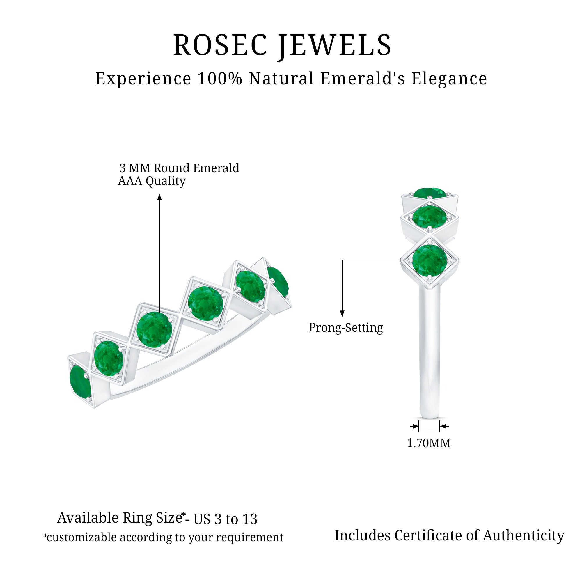 Celebrate those special moments in life with this lasting Emerald Eternity Ring, which offers a modern twist on a classic design. With its brilliant sparkle, this Half Eternity Wedding Band provides an exceptional look. Its geometric shape gives the Emerald Wedding Band a refined charm, featuring a simple design that maximizes sparkle while keeping a minimalistic appearance. Adorned with Round Shape Emeralds set in Prong Setting arranged in square patterns, it showcases a geometric design. The minimalist style and design symbolize everlasting love, resonating with contemporary elegance. Declare your love with this Emerald Anniversary Ring, representing faithful and eternal commitment, as its generous design remains timeless and unaffected by trends. With its straightforward design, this Emerald Stackable Ring is ideal for brides who prefer a simple and non-flashy accessory. Wear it solo or stack it with other rings for added flair.