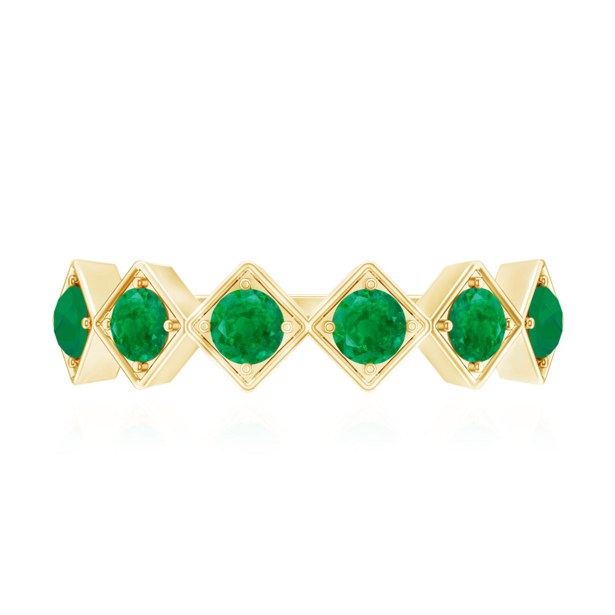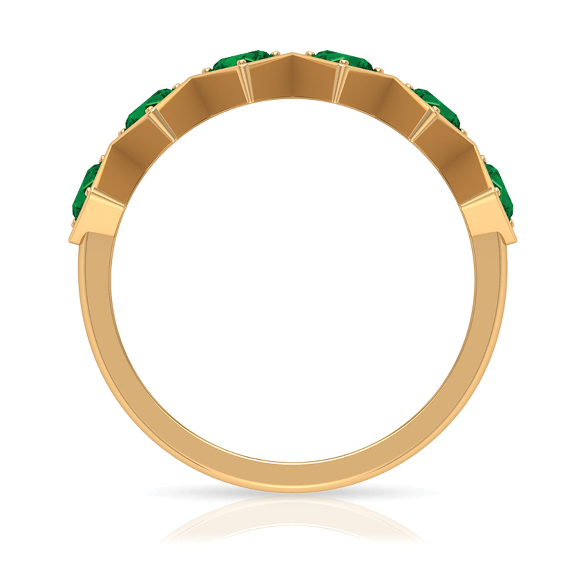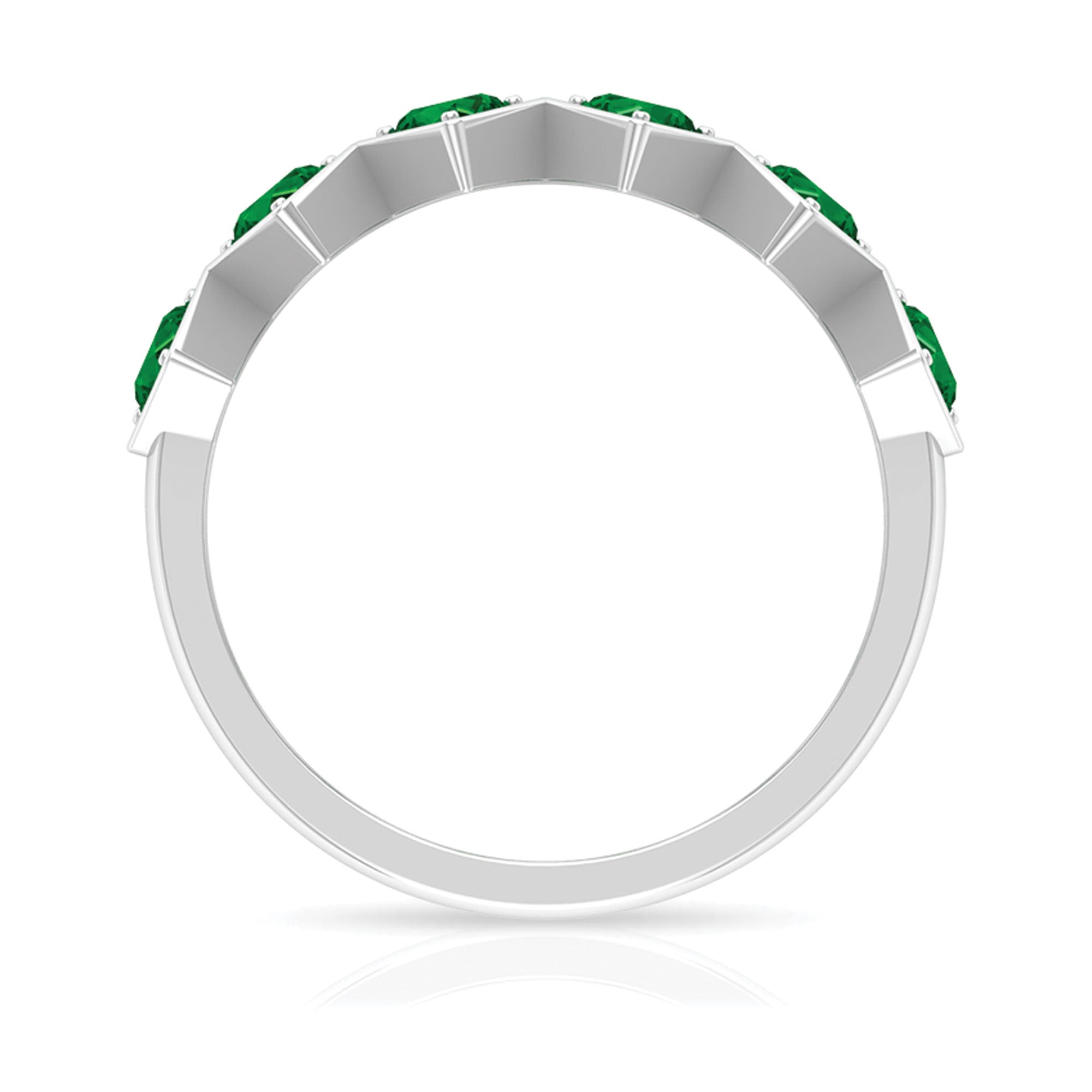 Celebrate those special moments in life with this lasting Emerald Eternity Ring, which offers a modern twist on a classic design. With its brilliant sparkle, this Half Eternity Wedding Band provides an exceptional look. Its geometric shape gives the Emerald Wedding Band a refined charm, featuring a simple design that maximizes sparkle while keeping a minimalistic appearance. Adorned with Round Shape Emeralds set in Prong Setting arranged in square patterns, it showcases a geometric design. The minimalist style and design symbolize everlasting love, resonating with contemporary elegance. Declare your love with this Emerald Anniversary Ring, representing faithful and eternal commitment, as its generous design remains timeless and unaffected by trends. With its straightforward design, this Emerald Stackable Ring is ideal for brides who prefer a simple and non-flashy accessory. Wear it solo or stack it with other rings for added flair.