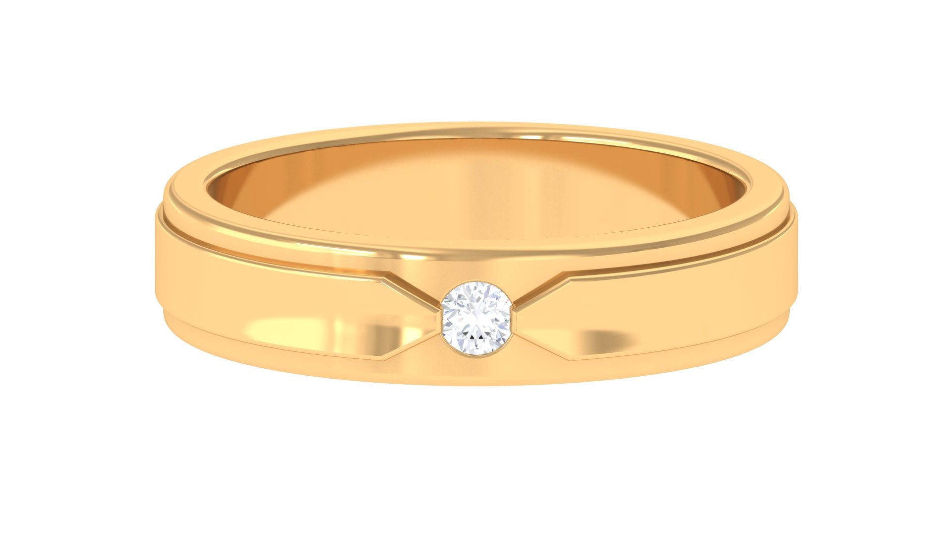 Gold Band Ring with Flush Set Diamond