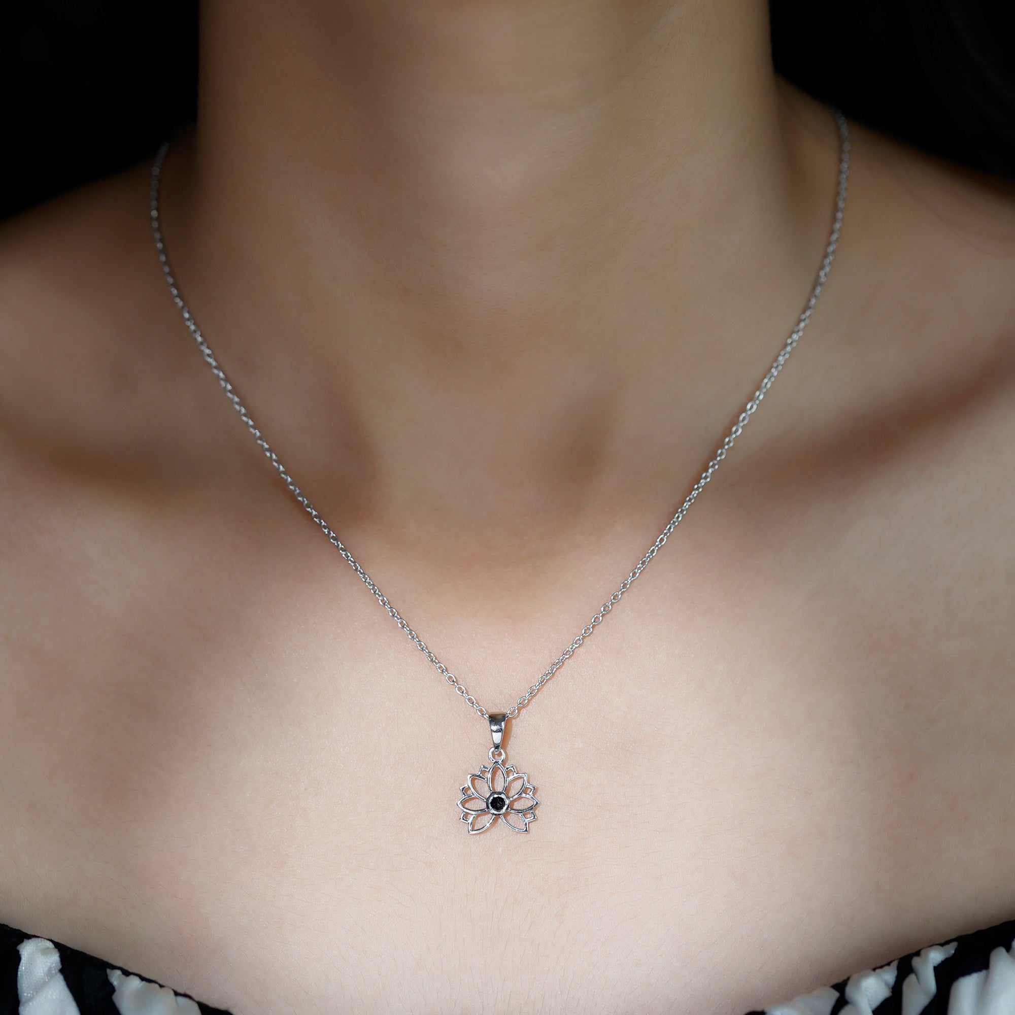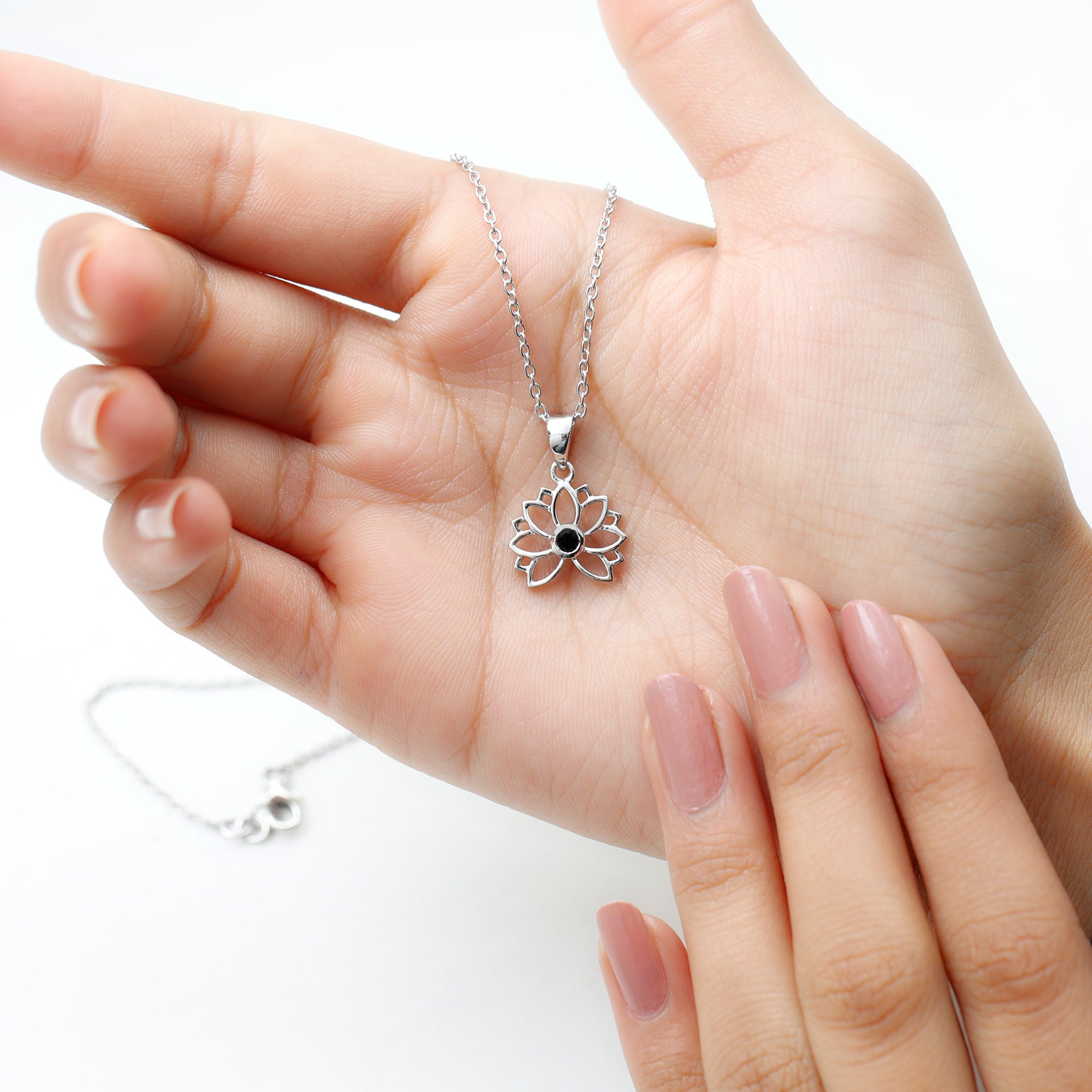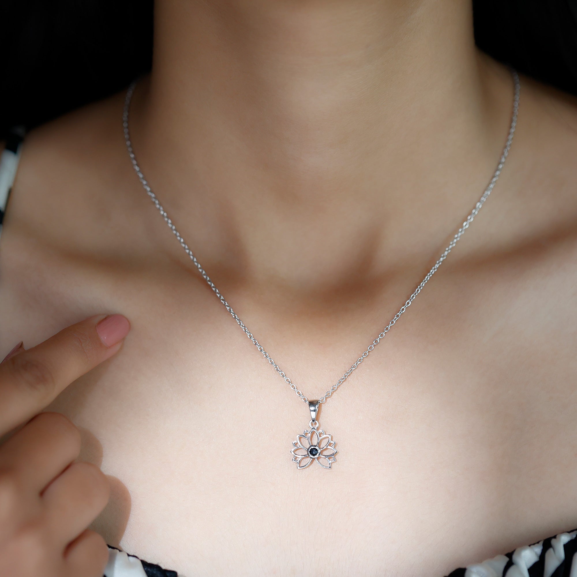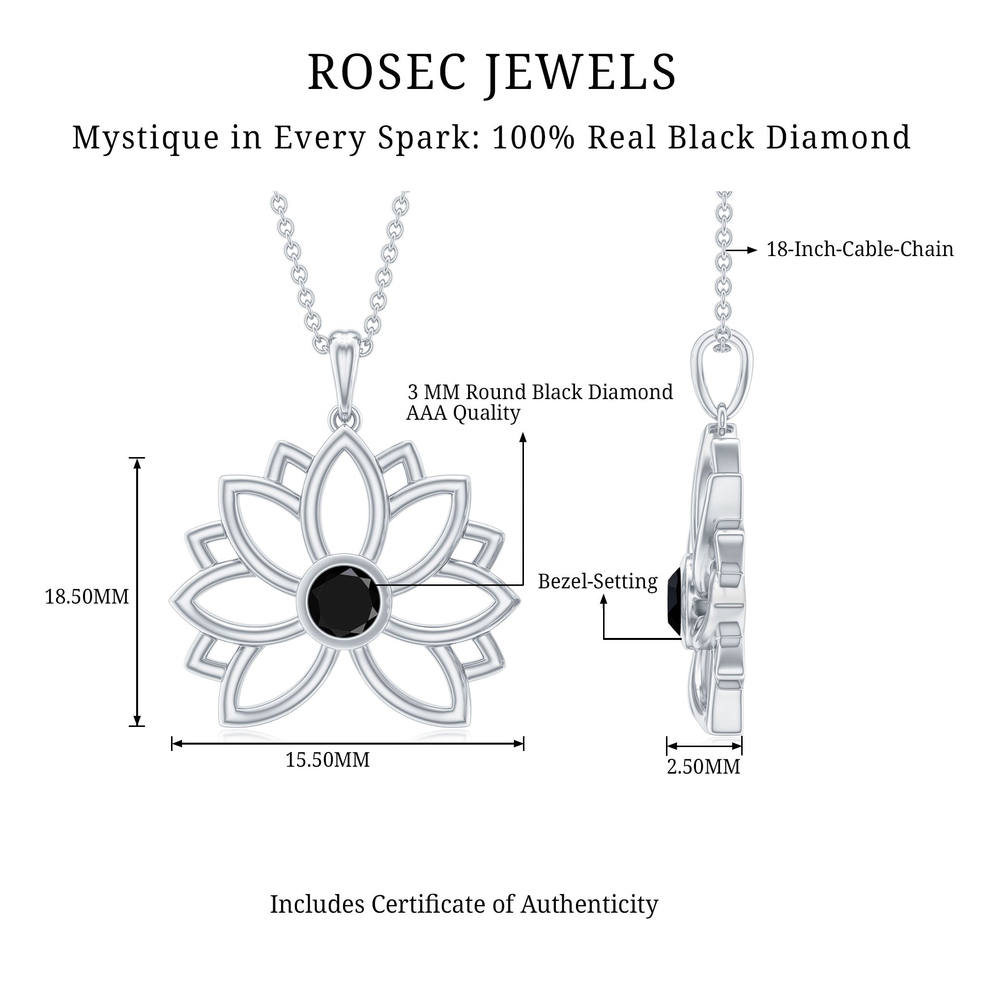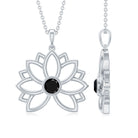 Lotus Flower Pendant with 3 MM Round Shape Black Diamond