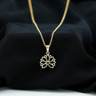 Lotus Pendant has stunning Round Solitaire Black Diamond stone encased in bezel setting to enhance the beauty of Floral Charm Necklace. Gold is used to craft this enchanting piece. Stack it or wear alone for statement look.