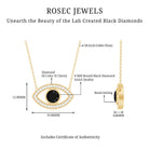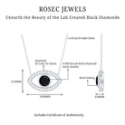 Highlight your neckline with our Black Diamond Pendant forming an Evil Eye design that protects you from harmful forces. The pendant features a Round Shaped Lab Created Black Diamond securely placed in bezel setting in the center embedded in an open-eye-shaped frame studded with natural diamond. This Evil Eye Pendant sparkles with the classic shimmer of AAAA Quality Lab Created Black Diamond and HI-SI Natural Diamond, making it exceptionally attractive. Upgrade your everyday ensemble and achieve refined glamour just by wearing this Diamond Pendant Necklace, a stunning piece that deserves to be in your jewelry wardrobe.