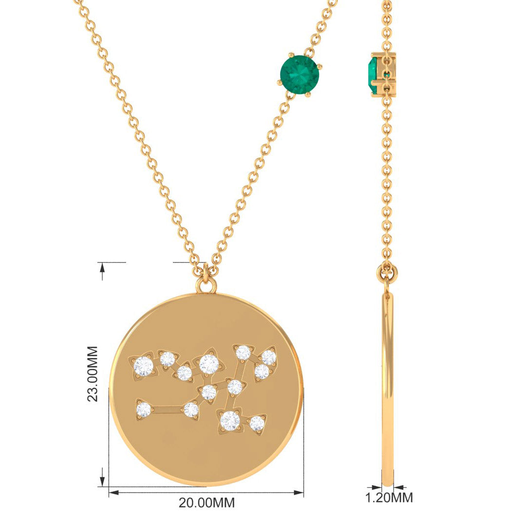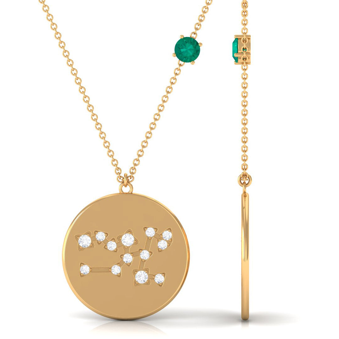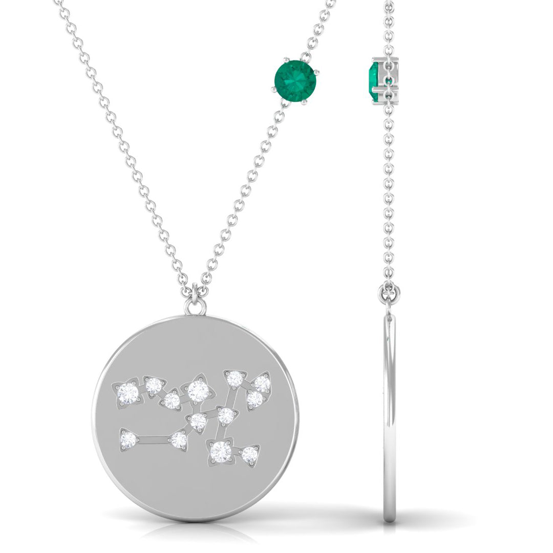 Green Emerald and Diamond Zodiac Taurus Necklace