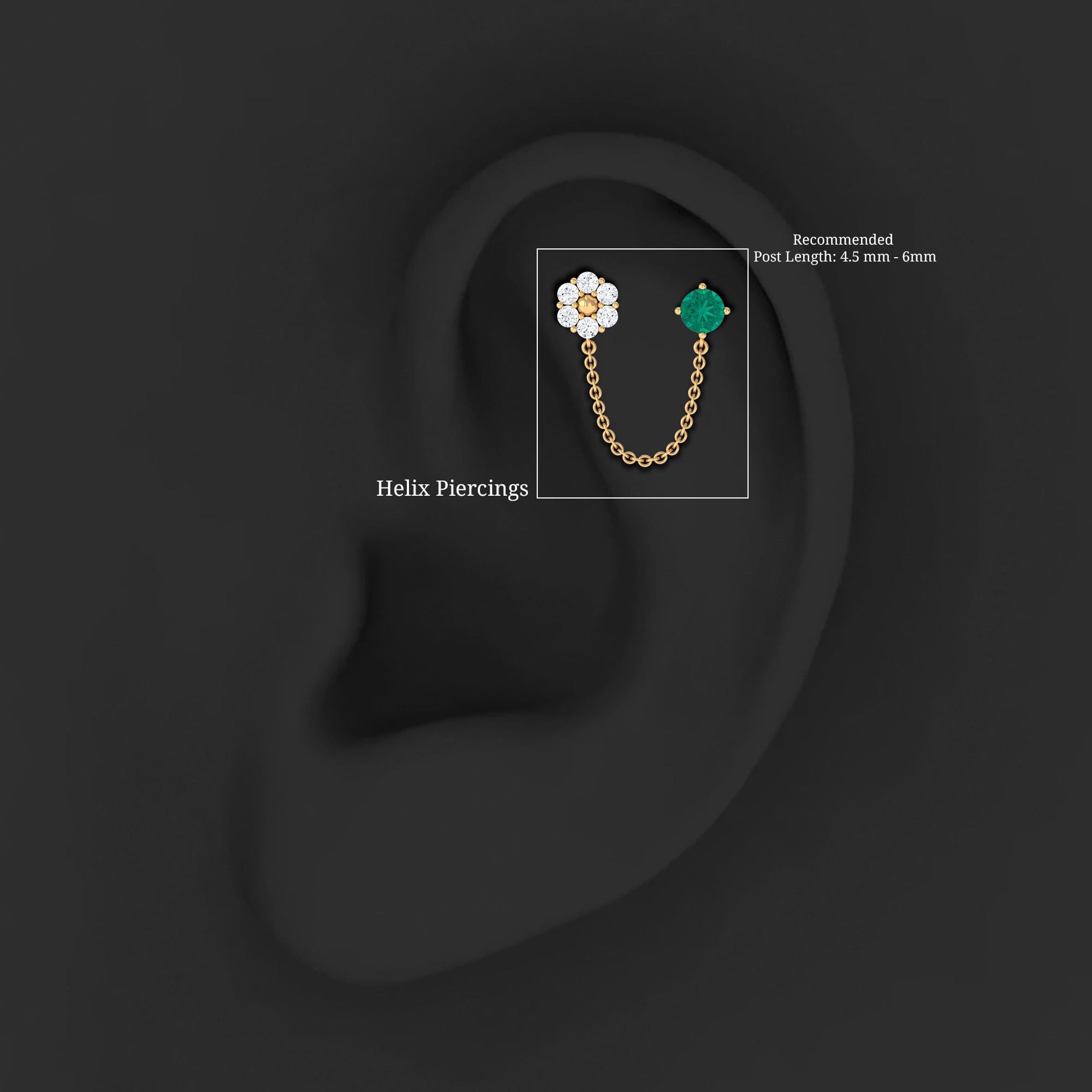 Green Emerald and Moissanite Floral Cartilage Chain Earring