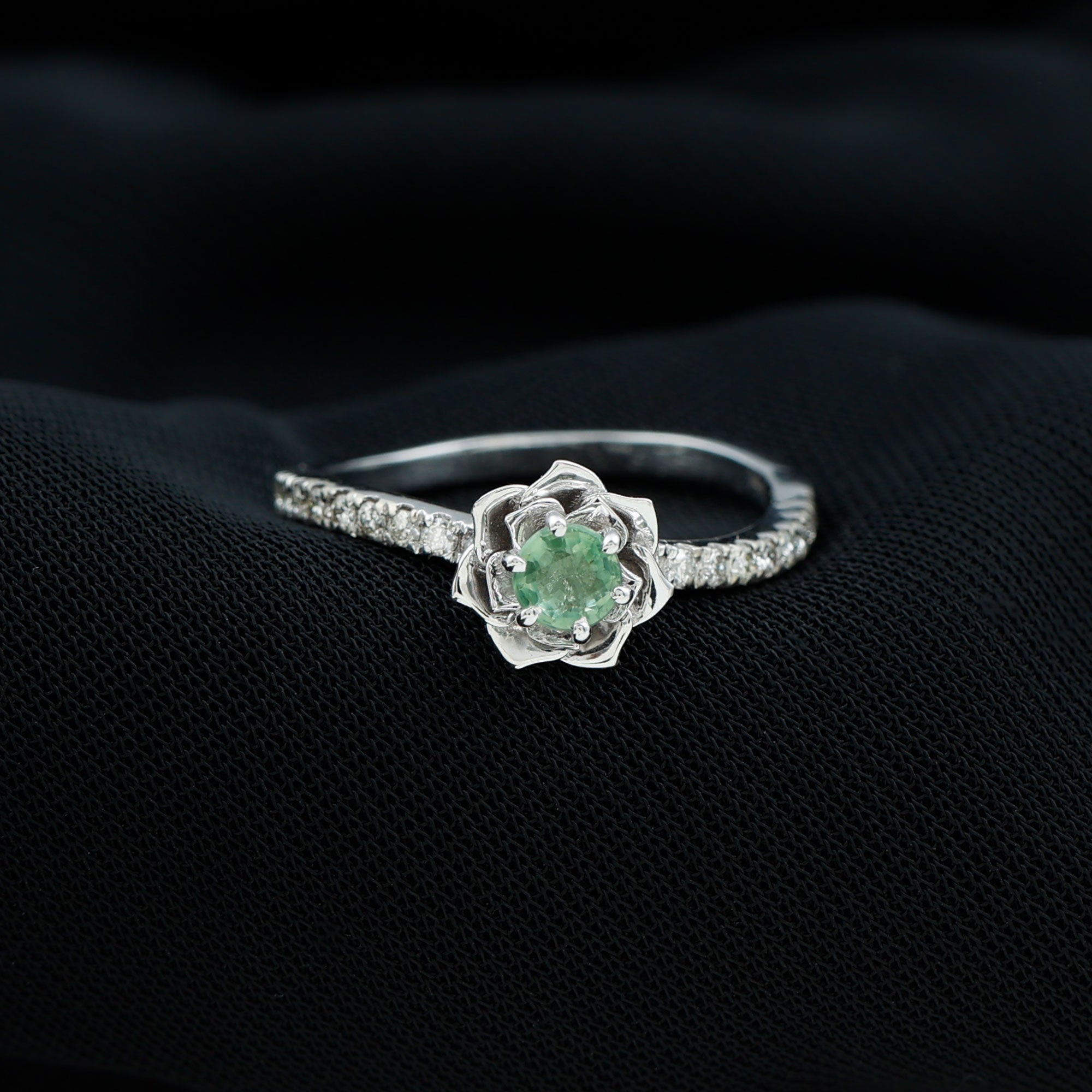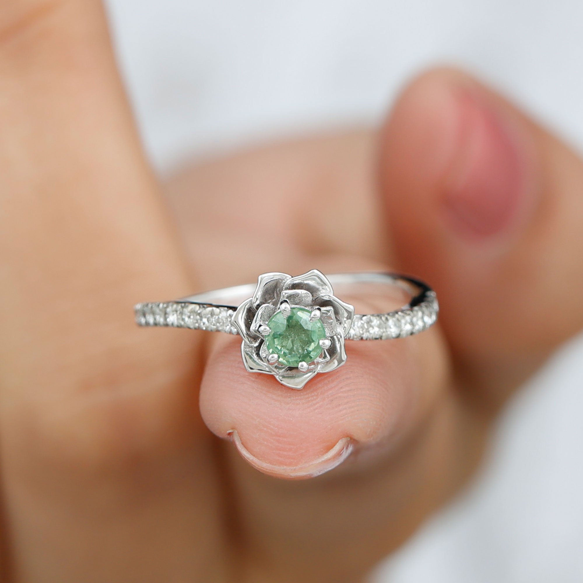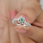 Green Sapphire and Diamond Flower Engagement Ring
