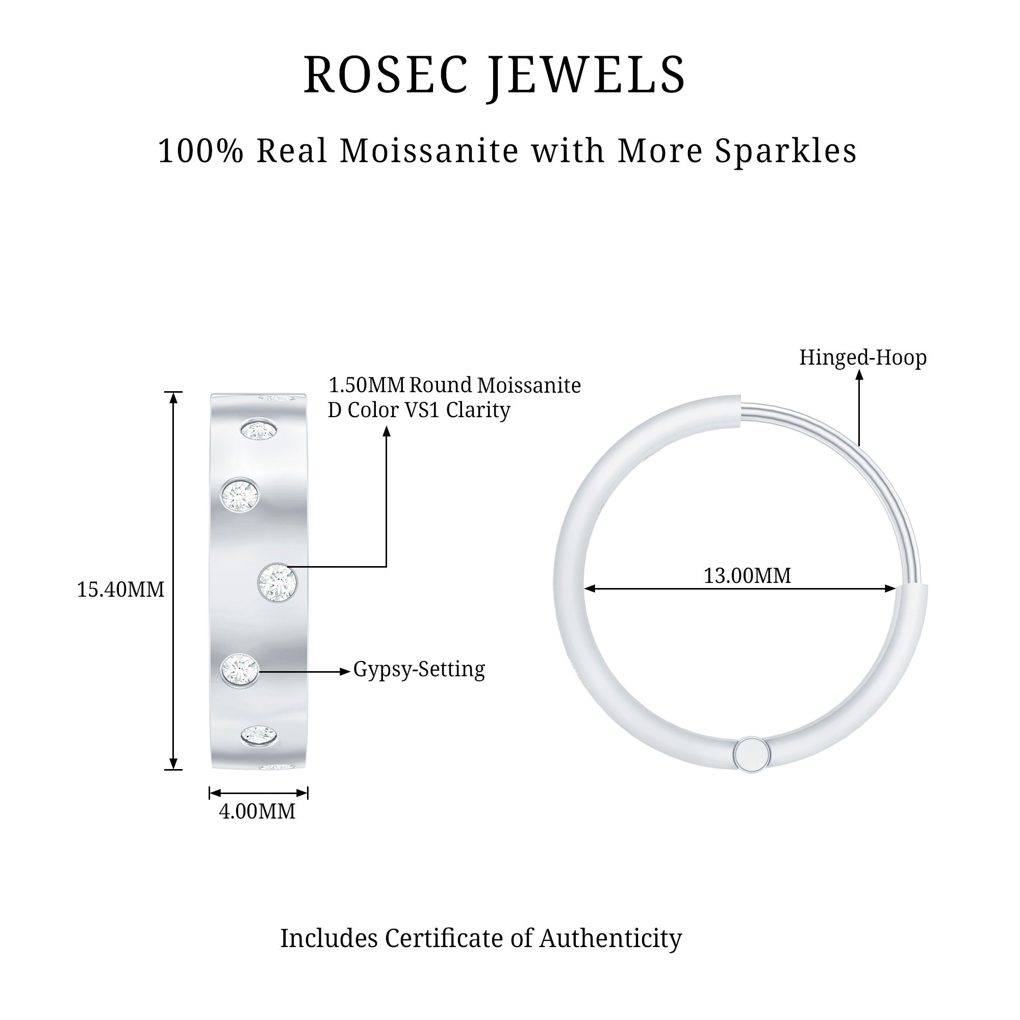 Gypsy Set Round Moissanite and Gold Hinged Hoop Earrings