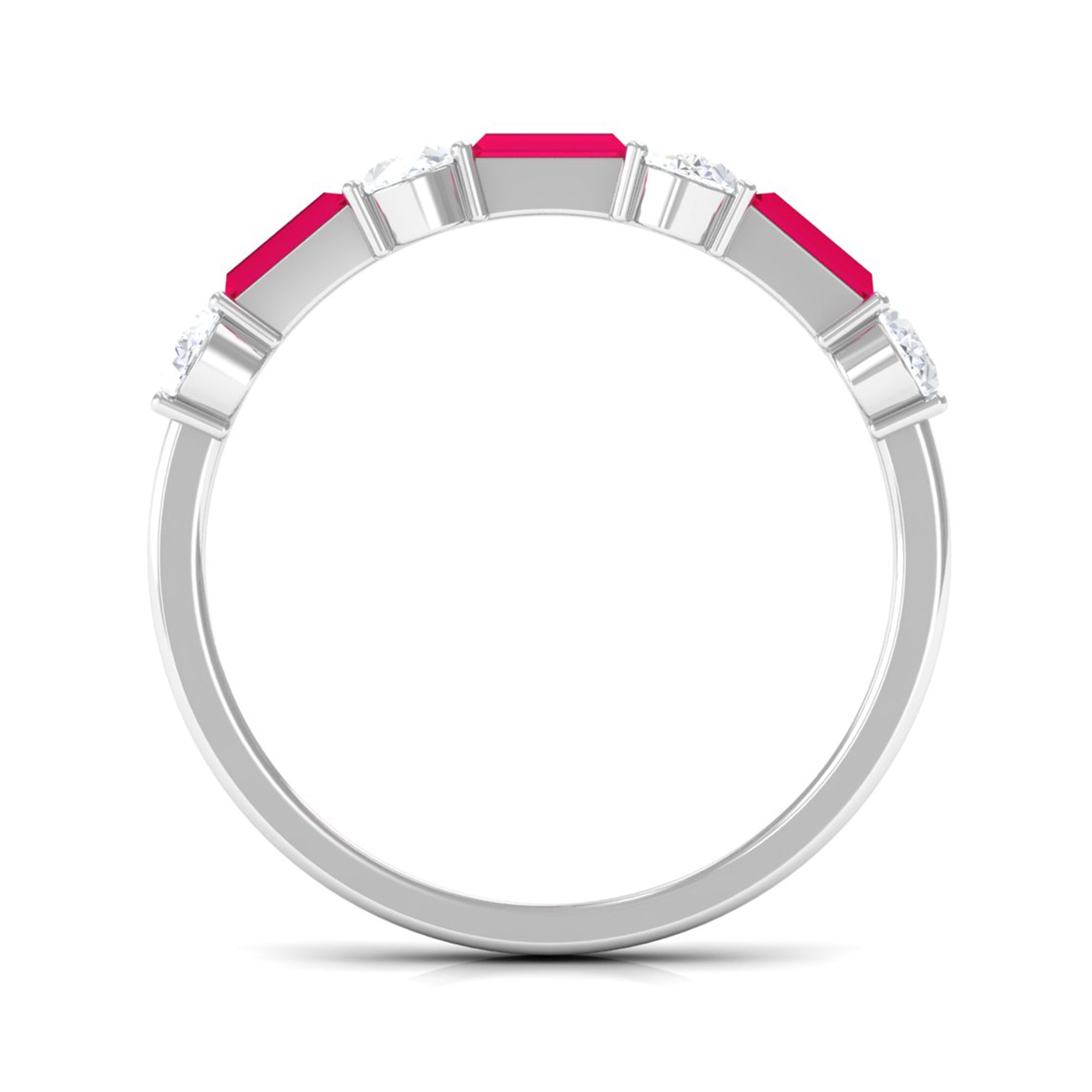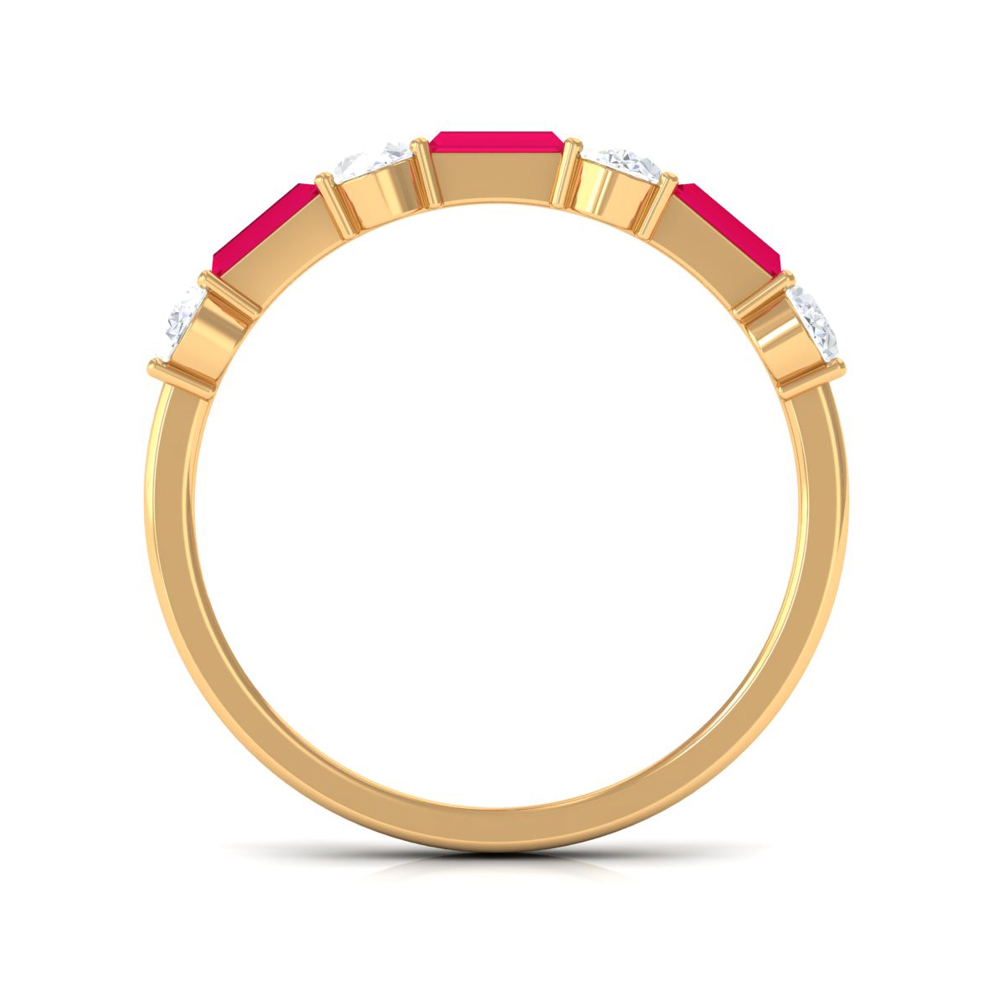 Experience the allure of love with this Half Eternity Ring featuring Ruby and shimmering Diamond gemstones, a captivating blend of beauty and brilliance.
