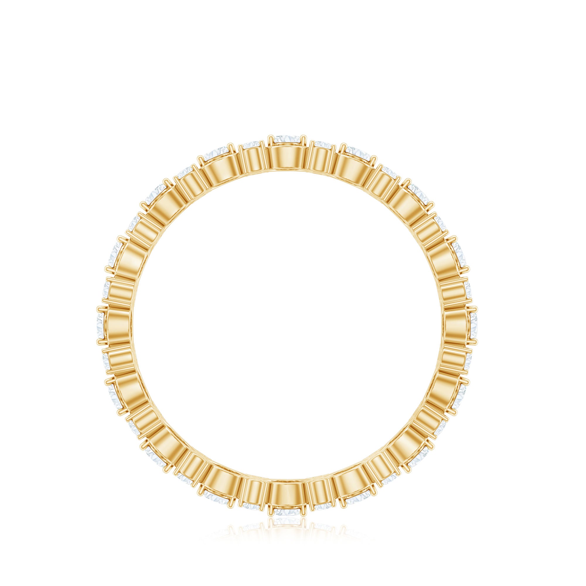 When love feels like forever, there comes this designer Moissanite Eternity Band, a symbol of infinite devotion, elegantly wrapped in a criss cross design. Crafted in high quality metal, this Infinity Wedding Band features alternating round and oval cut moissanite stones, each meticulously selected for its brilliant D color and VS1 clarity. The oval stones sit in the center of criss cross pattern, while the smaller round gems dance between them, adding dimension and extra sparkle. The prong setting secures each moissanite beautifully, allowing maximum light to reflect from every facet, giving this Half Eternity Wedding Band a radiant, fiery glow that wont go unnoticed. As a Half Eternity Band, it delivers all the dazzle with added comfort and flexibility, perfect for everyday wear, while still looking effortlessly luxurious. Stack it with your engagement ring for a fuller bridal look, pair it with other bands for a layered aesthetic, or wear it solo to let its timeless charm shine on its own. Whether gifted for an anniversary, wedding, or on a special moment, this Moissanite Stackable Ring is the kind of piece that turns moments into forever memories.