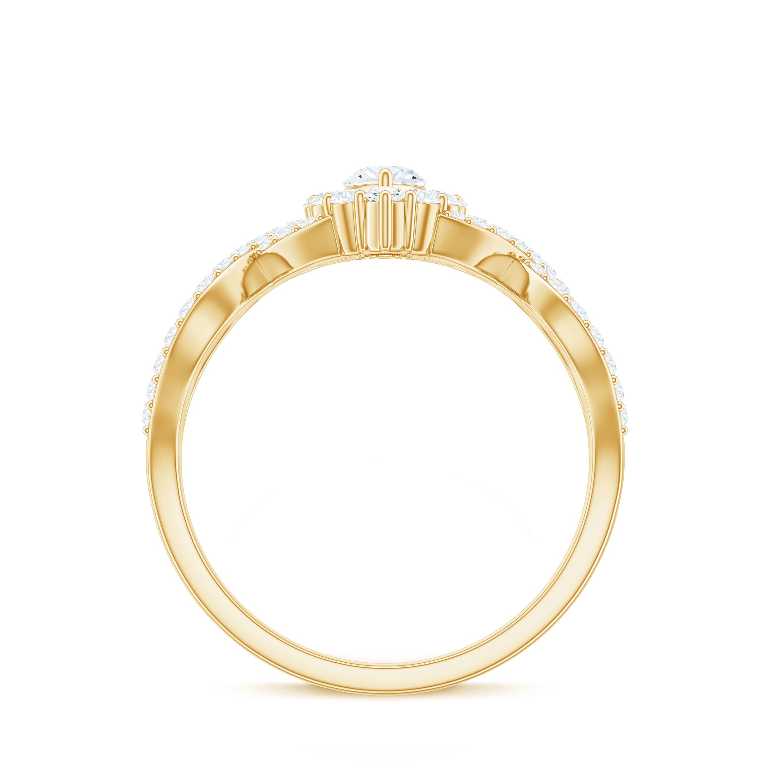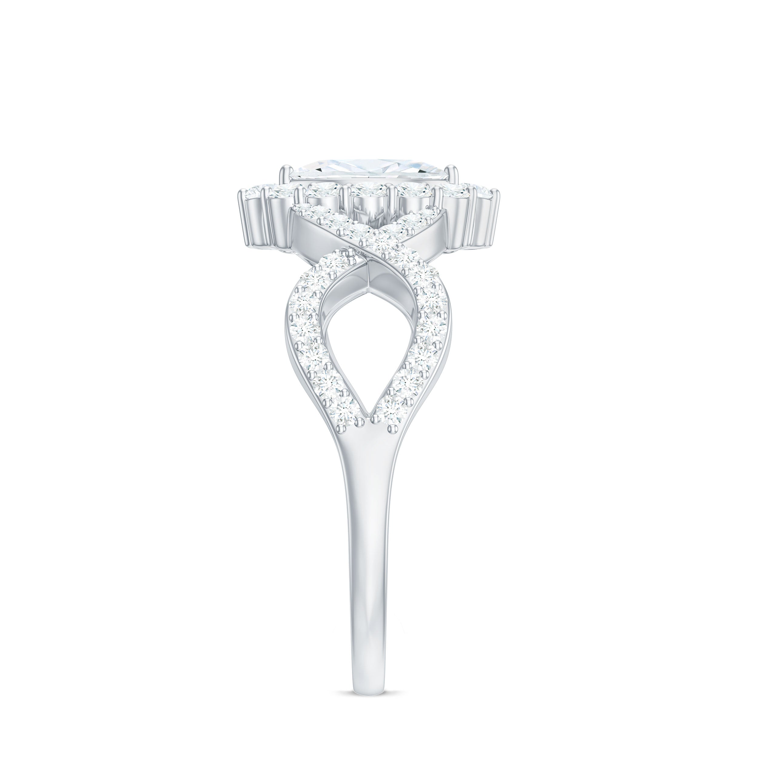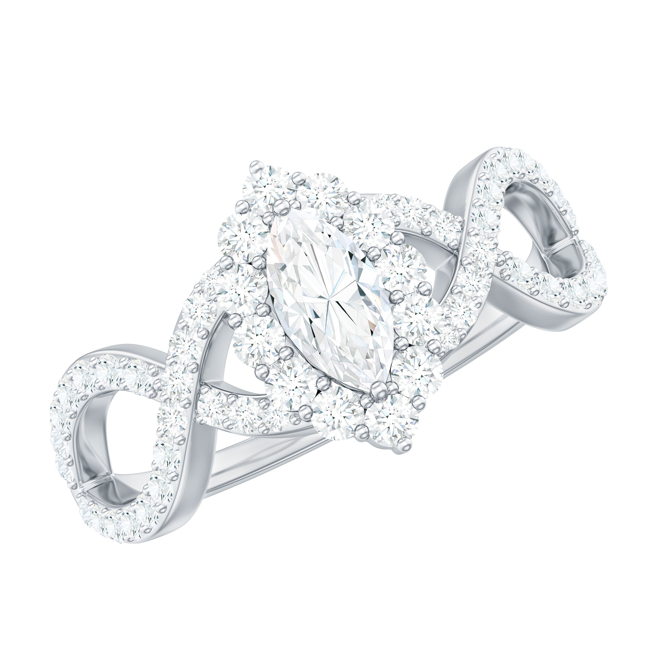 Marquise Moissanite Criss Cross Engagement Ring with Halo